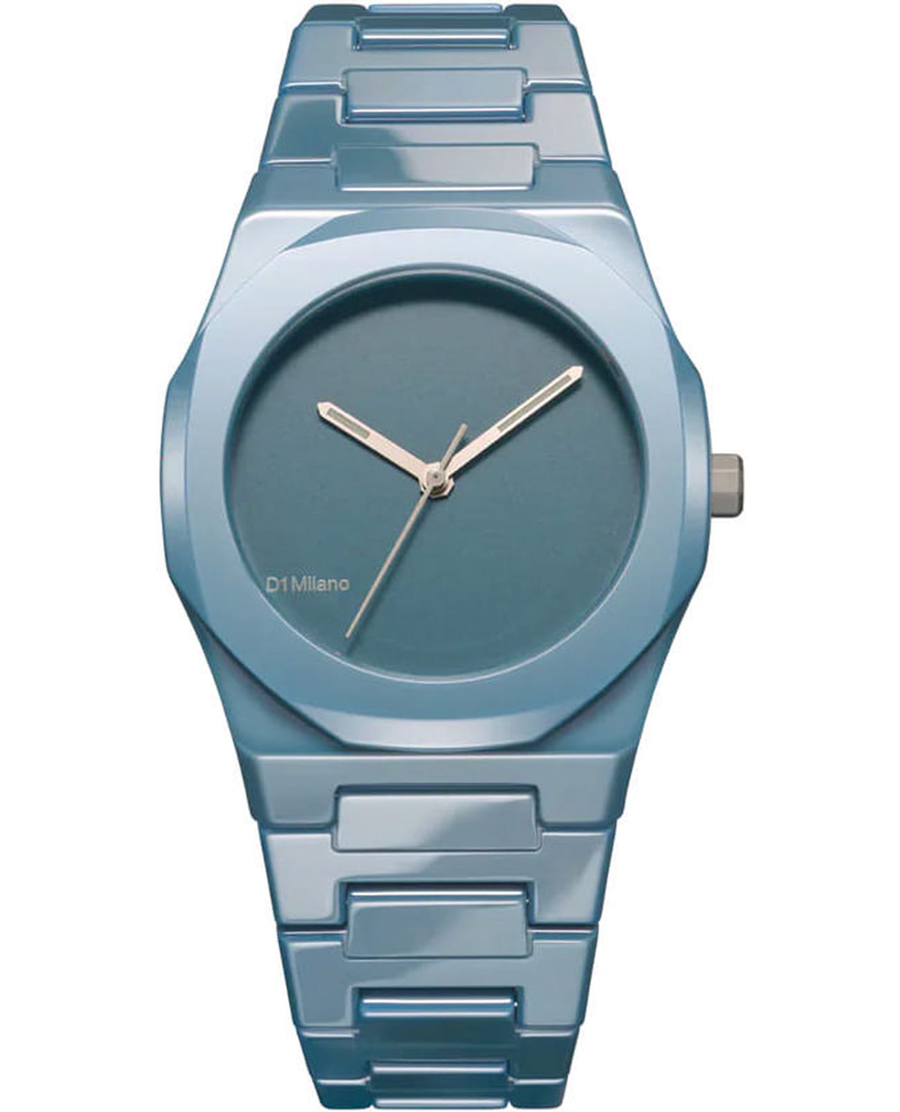 Часы D1 Milano Ceramic Pure Indigo CEBU05 – роскошный аксессуар для современных женщин и мужчин. Кварцевые часы с корпусом из голубой керамики. Минималистичный дизайн циферблата, защищенный прочным сапфировым стекломСапфировое стеклоПрочный и надёжный материал из кристалла сапфира синтетического происхождения, характеризующийся особой твёрдостью и устойчивостью к царапинам и повреждениям. с антибликовым покрытиемАнтибликовое покрытиеСлой оксида металла в 0,13-0,3 микрон, благодаря которому стекло часов не бликует и не отражает свет. Антибликовое покрытие уменьшает отражение света в 10 раз, обеспечивая отличную читаемость показателей циферблата., привлекает внимание своей сдержанной красотой. Циферблат лаконичный, без индексов, с надписью бренда. Изысканные стрелки из латуни с люминесцентным покрытиемЛюминесцентное покрытиеПозволяет считывать показания времени в темноте. Производители наносят на стрелки, часовые индексы, безель или поверхность циферблата светонакопительный состав, дающий холодное свечение.. Стальная задняя крышка с PVD-покрытиемPVDУльтратонкое покрытие наносится в технике вакуумного напыления, сочетает в себе нитрид титана особой прочности со слоем золота или оксида хрома. Несёт в себе декоративную или защитную функцию. закреплена на 4 винтах, что обеспечивает надежность конструкции. Элегантный керамический браслет с застёжкой «бабочка» с кнопкамиЗастёжка "бабочка"Такой вид застёжки дополняется предохранителями, помогающими избежать случайного раскрытия браслета. Обладают изящным исполнением. . Водозащита 50 метров защищает часы от брызг и дождя, делая их подходящими для повседневного использования. Часы сочетают в себе классический дизайн и современные технологии производства.