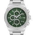 Мужские кварцевые часы Daniel Klein — это модный и лёгкий аксессуар для активного образа жизни. Корпус диаметром 52 мм выполнен из металла с IP-покрытиемIP-покрытиеМетод ионного напыления. Демонстрирует повышенную устойчивость к истиранию, окислению и химическим веществам. Под воздействием высокого давления и температуры около 1500°C молекулы металла надёжно соединяются с частицами корпуса часов. и сатинированной отделкой. БезельБезельВнешний ободок, закрепляющий стекло. В спортивных часах так называется поворотное кольцо с делениями на циферблате, выполняет роль таймера – замеряет отрезки времени на шкале. Неподвижный безель – элемент декора. Однонаправленно вращающийся безель на дайверских часах позволяет фиксировать моменты погружения и выныривания на поверхность. украшен стильными винтами. Циферблат зелёного цвета оформлен горизонтальным узором, штрихами и прямоугольными стрелками в стиле Baton. Присутствуют отдельные индикаторы дня недели и второго часового пояса (GMTВторой часовой поясФункция, позволяющая отображать время двух часовых поясов одновременно.), а также 24-часовой формат времени. Окошко даты расположено в положении 4 часов. Стрелки и метки с люминесцентным покрытиемЛюминесцентное покрытиеПозволяет считывать показания времени в темноте. Производители наносят на стрелки, часовые индексы, безель или поверхность циферблата светонакопительный состав, дающий холодное свечение., обеспечивающим хорошую читаемость в темноте. Циферблат защищён минеральным стекломМинеральное стеклоМинеральное стекло представляет собой искусственно выращенный минерал кварца. Такое стекло отличается особой устойчивостью к повреждениям и царапинам. Уступает по некоторым качествам сапфировому стеклу.. Заводная головка рифлёная, с защитой. Часы оснащены стальным браслетом на раскладной застёжкеРаскладная застёжкаТакой тип застёжки используется только на браслетах из металла. Она никогда не раскрывается полностью, происходит разделение на 2 и более частей. Раскладывающая застёжка снизит вероятность потери часов к минимуму.. Водонепроницаемость 50 м позволяет использовать часы в повседневных условиях. Идеальный выбор для тех, кто ценит турецкое качество и современный дизайн.