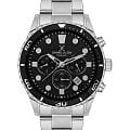 Мужские кварцевые часы Daniel Klein — это функциональный аксессуар, отражающий уверенность и чувство стиля. Корпус диаметром 44 мм выполнен из нержавеющей стали. БезельБезельВнешний ободок, закрепляющий стекло. В спортивных часах так называется поворотное кольцо с делениями на циферблате, выполняет роль таймера – замеряет отрезки времени на шкале. Неподвижный безель – элемент декора. Однонаправленно вращающийся безель на дайверских часах позволяет фиксировать моменты погружения и выныривания на поверхность. с IP-покрытиемIP-покрытиеМетод ионного напыления. Демонстрирует повышенную устойчивость к истиранию, окислению и химическим веществам. Под воздействием высокого давления и температуры около 1500°C молекулы металла надёжно соединяются с частицами корпуса часов.. Циферблат чёрного цвета выполнен по технологии Sunray («солнечные лучи») и оформлен точками, штрихами и стрелками. Присутствуют индикаторы 24-часового формата времени и второго часового пояса (GMTВторой часовой поясФункция, позволяющая отображать время двух часовых поясов одновременно.). Окошко даты расположено между 4 и 5 часами. Стрелки и метки с люминесцентным покрытиемЛюминесцентное покрытиеПозволяет считывать показания времени в темноте. Производители наносят на стрелки, часовые индексы, безель или поверхность циферблата светонакопительный состав, дающий холодное свечение., обеспечивающим хорошую читаемость в темноте. Циферблат защищён минеральным стекломМинеральное стеклоМинеральное стекло представляет собой искусственно выращенный минерал кварца. Такое стекло отличается особой устойчивостью к повреждениям и царапинам. Уступает по некоторым качествам сапфировому стеклу.. Часы оснащены стальным браслетом на раскладной застёжкеРаскладная застёжкаТакой тип застёжки используется только на браслетах из металла. Она никогда не раскрывается полностью, происходит разделение на 2 и более частей. Раскладывающая застёжка снизит вероятность потери часов к минимуму.. Водонепроницаемость 50 м позволяет использовать часы в повседневных условиях. Идеальный выбор для тех, кто ценит турецкое качество и универсальный дизайн.