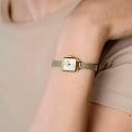 Женские наручные часы с минеральным стекломМинеральное стеклоМинеральное стекло представляет собой искусственно выращенный минерал кварца. Такое стекло отличается особой устойчивостью к повреждениям и царапинам. Уступает по некоторым качествам сапфировому стеклу. Daniel Wellington Quadro DW00100656, кварцевый механизм с высокой точностью. Корпус часов изготовлен из стали с PVD-покрытиемPVDУльтратонкое покрытие наносится в технике вакуумного напыления, сочетает в себе нитрид титана особой прочности со слоем золота или оксида хрома. Несёт в себе декоративную или защитную функцию.. Двухуровневый циферблат выполнен по технологии Sunray (солнечные лучи) и украшен фирменным логотипом Daniel Wellington. Накладные метки в виде штрихов. Рифленая заводная головка. Индивидуальный серийный номер. Класс водозащиты: 30 метров, позволит защитить корпус от случайных брызг или капель дождя. Стальной браслет миланского плетения с PVD-покрытиемPVDУльтратонкое покрытие наносится в технике вакуумного напыления, сочетает в себе нитрид титана особой прочности со слоем золота или оксида хрома. Несёт в себе декоративную или защитную функцию. на раскладном замкеРаскладной замокДанный вариант застежки используется только на часах с металлическим браслетом. Отличительная особенность такого крепления в том, что длина браслета становится универсальной и вы можете самостоятельно отрегулировать нужный вам размер – застежка просто двигается по браслету часов..