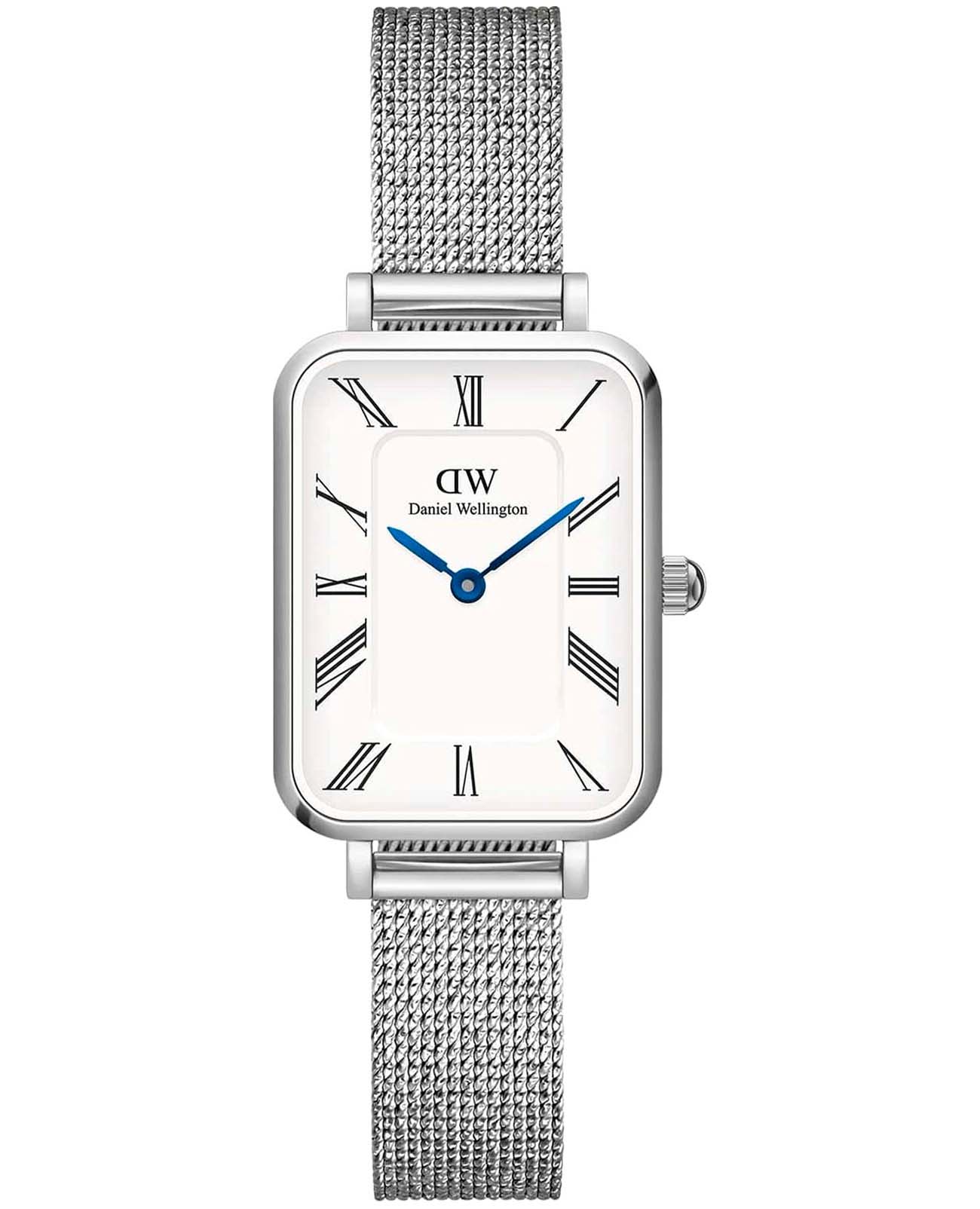 Женские наручные часы с минеральным стекломМинеральное стеклоМинеральное стекло представляет собой искусственно выращенный минерал кварца. Такое стекло отличается особой устойчивостью к повреждениям и царапинам. Уступает по некоторым качествам сапфировому стеклу. Daniel Wellington Quadro Roman Numerals Sterling DW00100690, кварцевый механизм с высокой точностью. Корпус часов изготовлен из нержавеющей стали. Накладные метки в виде штрихов. Японский кварцевый механизм. Рифленая заводная головка. Класс водозащиты: 30 метров, позволит защитить корпус от случайных брызг или капель дождя. Стальной браслет миланского плетения на раскладном замкеРаскладной замокДанный вариант застежки используется только на часах с металлическим браслетом. Отличительная особенность такого крепления в том, что длина браслета становится универсальной и вы можете самостоятельно отрегулировать нужный вам размер – застежка просто двигается по браслету часов..