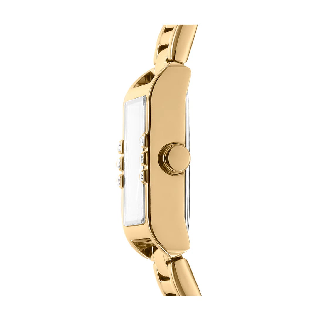 DKNY Westside Midi DK1L008M0065 — женские кварцевые часы, воплощающие урбанистический шик и современный минимализм. Корпус из нержавеющей стали диаметром 30 мм и минеральное стеклоМинеральное стеклоМинеральное стекло представляет собой искусственно выращенный минерал кварца. Такое стекло отличается особой устойчивостью к повреждениям и царапинам. Уступает по некоторым качествам сапфировому стеклу. обеспечивает защиту от царапин, а водонепроницаемость до 30 метров делает модель практичной для активного отдыха или повседневной носки. Стальной браслет с IP-покрытиемIP-покрытиеМетод ионного напыления. Демонстрирует повышенную устойчивость к истиранию, окислению и химическим веществам. Под воздействием высокого давления и температуры около 1500°C молекулы металла надёжно соединяются с частицами корпуса часов. на раскладной застёжкеРаскладная застёжкаТакой тип застёжки используется только на браслетах из металла. Она никогда не раскрывается полностью, происходит разделение на 2 и более частей. Раскладывающая застёжка снизит вероятность потери часов к минимуму. гарантирует комфорт и надежность. БезельБезельВнешний ободок, закрепляющий стекло. В спортивных часах так называется поворотное кольцо с делениями на циферблате, выполняет роль таймера – замеряет отрезки времени на шкале. Неподвижный безель – элемент декора. Однонаправленно вращающийся безель на дайверских часах позволяет фиксировать моменты погружения и выныривания на поверхность. инкрустирован кристаллами. Лаконичный дизайн коллекции Westside Glitz отражает нью-йоркский стиль, делая часы идеальным аксессуаром для женщин, ценящих сдержанную роскошь, практичность и современную эстетику мегаполиса.