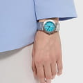 Элегантные женские наручные часы DKNY Eastside Logo DK1L023M0025 сочетают стиль и функциональность. Корпус из нержавеющей стали диаметром 36 мм и минеральное стеклоМинеральное стеклоМинеральное стекло представляет собой искусственно выращенный минерал кварца. Такое стекло отличается особой устойчивостью к повреждениям и царапинам. Уступает по некоторым качествам сапфировому стеклу. обеспечивает защиту от царапин, а водонепроницаемость до 50 метров делает модель практичной для активного отдыха или повседневной носки. Браслет из нержавеющей стали с раскладной застёжкойРаскладная застёжкаТакой тип застёжки используется только на браслетах из металла. Она никогда не раскрывается полностью, происходит разделение на 2 и более частей. Раскладывающая застёжка снизит вероятность потери часов к минимуму. надежно фиксирует часы на руке. БезельБезельВнешний ободок, закрепляющий стекло. В спортивных часах так называется поворотное кольцо с делениями на циферблате, выполняет роль таймера – замеряет отрезки времени на шкале. Неподвижный безель – элемент декора. Однонаправленно вращающийся безель на дайверских часах позволяет фиксировать моменты погружения и выныривания на поверхность. инкрустирован кристаллами. Эта модель станет идеальным дополнением вашего гардероба, подчеркнув индивидуальный стиль и добавляя нотки роскоши в любой образ.
