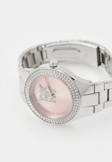 DKNY Parsons Glitz DK1L025M0025 воплощают в себе шик и изысканность. Корпус из нержавеющей стали диаметром 38 мм и минеральное стеклоМинеральное стеклоМинеральное стекло представляет собой искусственно выращенный минерал кварца. Такое стекло отличается особой устойчивостью к повреждениям и царапинам. Уступает по некоторым качествам сапфировому стеклу. обеспечивает защиту от царапин, а водонепроницаемость до 50 метров делает модель практичной для активного отдыха или повседневной носки. Браслет из нержавеющей стали на раскладной застёжкеРаскладная застёжкаТакой тип застёжки используется только на браслетах из металла. Она никогда не раскрывается полностью, происходит разделение на 2 и более частей. Раскладывающая застёжка снизит вероятность потери часов к минимуму. надежно фиксирует часы на руке и подчёркивает женственность дизайна. БезельБезельВнешний ободок, закрепляющий стекло. В спортивных часах так называется поворотное кольцо с делениями на циферблате, выполняет роль таймера – замеряет отрезки времени на шкале. Неподвижный безель – элемент декора. Однонаправленно вращающийся безель на дайверских часах позволяет фиксировать моменты погружения и выныривания на поверхность. инкрустирован кристаллами. Эта модель станет идеальным дополнением вашего гардероба, подчеркнув индивидуальный стиль.