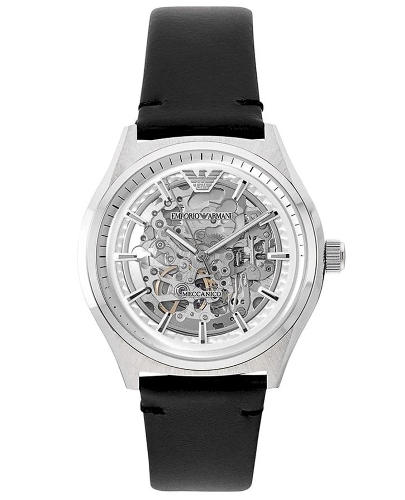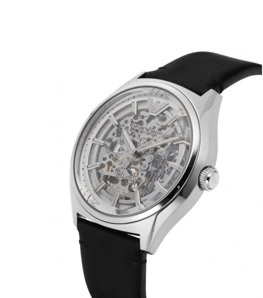 Мужские механические часы Emporio Armani года оснащены механизмом с автоподзаводом и японским калибром, обеспечивающим высокую точность хода. Корпус выполнен из нержавеющей стали серебристого цвета и защищён минеральным стекломМинеральное стеклоМинеральное стекло представляет собой искусственно выращенный минерал кварца. Такое стекло отличается особой устойчивостью к повреждениям и царапинам. Уступает по некоторым качествам сапфировому стеклу.. Циферблат круглой формы в серебристом цвете оформлен метками. Ремешок из натуральной кожи чёрного цвета фиксируется на классической пряжке. Водонепроницаемость составляет 50 WR, что позволяет использовать часы в повседневных условиях, защищая от случайных брызг и капель дождя. Модель сочетает в себе итальянский дизайн и надёжность японской механики, подчёркивая стиль и индивидуальность владельца.