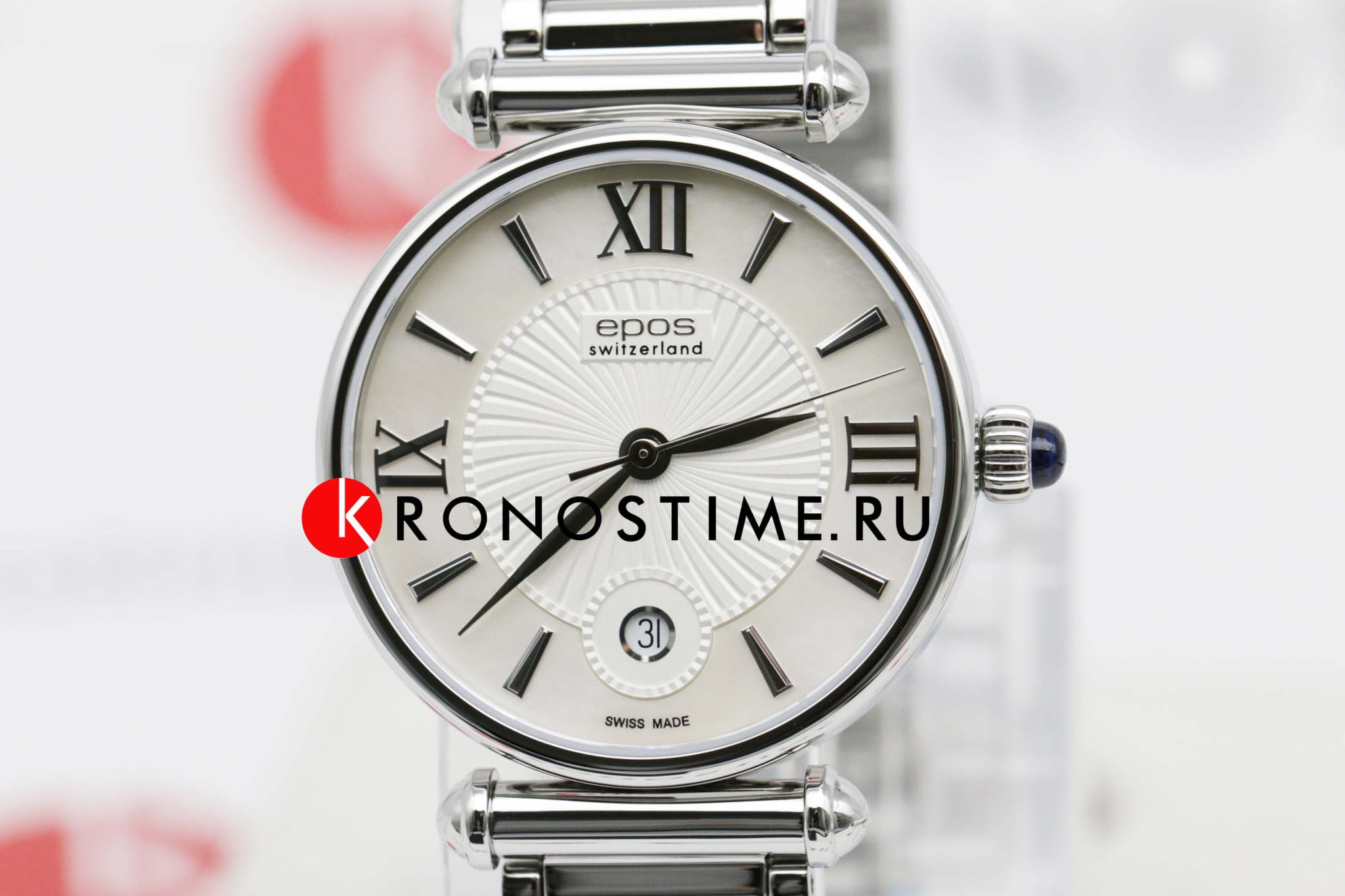 Женские швейцарские кварцевые часы Epos Quartz 8000.700.20.68.30, кварцевый механизм с высокой точностью. Сапфировое стеклоСапфировое стеклоПрочный и надёжный материал из кристалла сапфира синтетического происхождения, характеризующийся особой твёрдостью и устойчивостью к царапинам и повреждениям. устойчивое к появлению царапин, обладающее высокой прозрачностью. Класс водозащиты: 30 метров, позволит защитить корпус от случайных брызг или капель дождя. Корпус часов изготовлен из стали. Браслет с Застёжка "бабочка"Застёжка "бабочка"Такой вид застёжки дополняется предохранителями, помогающими избежать случайного раскрытия браслета. Обладают изящным исполнением. . Заводная головка украшена сапфиром в форме кабошона. Окошко даты находятся в положении 6 часов.