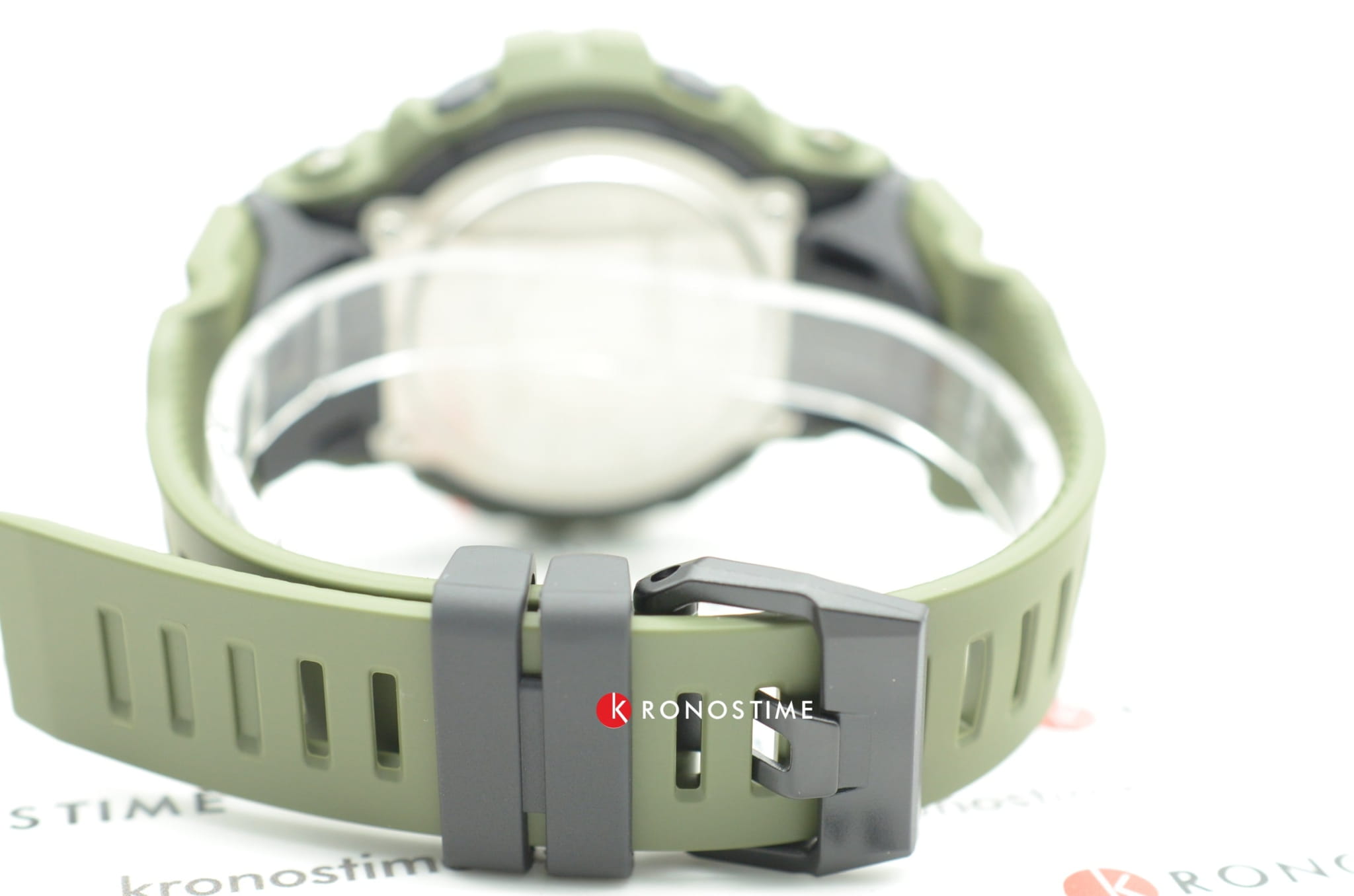 Это не просто стильный и практичный аксессуар, модель цвета хаки является идеальным помощником в правильной организации тренировок. Часы для фитнеса и бега оснащены шагомером, измеряющим их в количестве от 0 до 999999, многофункциональным таймером, секундомером с памятью на 200 результатов. С помощью технологии BluetoothBluetoothСовременная технология, позволяющая синхронизировать часы с телефоном и переносить данные. Часы с Bluetooth расширяют возможности вашего смартфона и делают его использование ещё более удобным. данные о физической активности могут передаваться и анализироваться в вашем смартфоне, для этого было разработано приложение G-Shock Connected Phone. Кварцевый механизм японского производства. Батарейка рассчитана на 3 года работы. Ударопрочный корпусУдаропрочный корпусМеханизм заключён в корпус, выполненный из современных материалов, устойчивых к ударам, механическим повреждениям и падению с высоты: инновационный пластик, карбон, нержавеющая сталь, титан. из полимерного материала. Минеральное стекло. Водостойкость до 20 бар. Циферблат со светодиодной подсветкойСветодиодная подсветкаСветодиодная или LED-подсветка обеспечивает появление яркого холодного свечения за счёт LED-элементов - маленьких лампочек. Они потребляют минимальное количество энергии, чаще всего можно встретить 1 светодиод, в нижней части циферблата., стрелки с люминесцентным покрытиемЛюминесцентное покрытиеПозволяет считывать показания времени в темноте. Производители наносят на стрелки, часовые индексы, безель или поверхность циферблата светонакопительный состав, дающий холодное свечение.. Будильник, мировое времяМировое время Полезное часовое усложнение, отображающее время в основных городах и известных областях по всему миру, оно связано с часовыми поясами, удобно для путешественников и бизнесменов. , календарь до 2099 года, функция поиска телефона, хронографХронографФункция позволяет измерять отрезки времени с особой точностью: часы, минуты, секунды. Верным признаком хронографа является наличие на циферблате 3 дополнительных окошек-счётчиков.. Габариты: 54,1 x 48,6 x 15,5 мм.