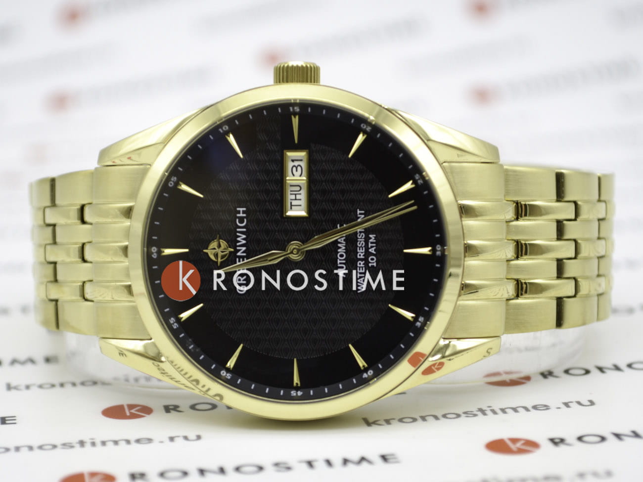Мужские часы с минеральным стекломМинеральное стеклоМинеральное стекло представляет собой искусственно выращенный минерал кварца. Такое стекло отличается особой устойчивостью к повреждениям и царапинам. Уступает по некоторым качествам сапфировому стеклу. Greenwich Good Luck Classic GW 074.20.31, представляют собой классический вариант для повседневной носки. В центральной части циферблата — отличительная черта моделей этой серии: гильоше, объемные линии которого напоминают волны. Обратите внимание на форму пластины, где крепятся накладные риски: она сделана в форме латинской буквы G, первой буквы в названии бренда. Часы характеризуются традиционными формами, лаконичным исполнением, что делает модель элегантным дополнением к деловому костюму. Сквозь прозрачную заднюю крышку вы увидите детали механизма TMI с декорированным ротором: на нем выгравировано изображение символа английских моряков — парусника. Корпус и браслет часов выполнены из гипоаллергенной нержавеющей стали с PVD-покрытиемPVDУльтратонкое покрытие наносится в технике вакуумного напыления, сочетает в себе нитрид титана особой прочности со слоем золота или оксида хрома. Несёт в себе декоративную или защитную функцию.. Браслет на раскладной застёжкеРаскладная застёжкаТакой тип застёжки используется только на браслетах из металла. Она никогда не раскрывается полностью, происходит разделение на 2 и более частей. Раскладывающая застёжка снизит вероятность потери часов к минимуму.. Дизайн, актуальный для любого современного образа, и надежность используемых материалов делают автоматические часы Greenwich удобным и стильным аксессуаром на каждый день. Окошко даты и дня недели находится в положении 3 часа. Класс водозащиты: 100 метров, позволит плавать, нырять и заниматься другими водными видами спорта.
