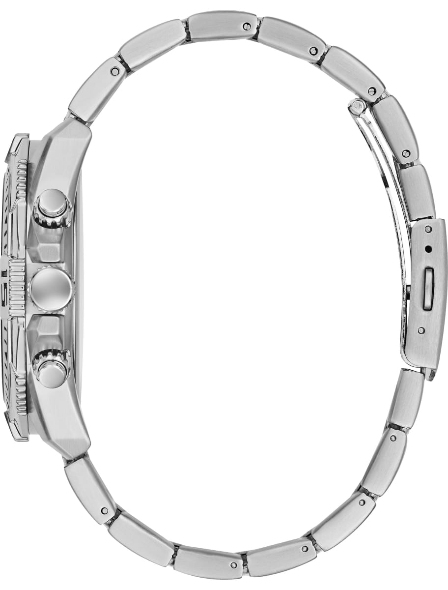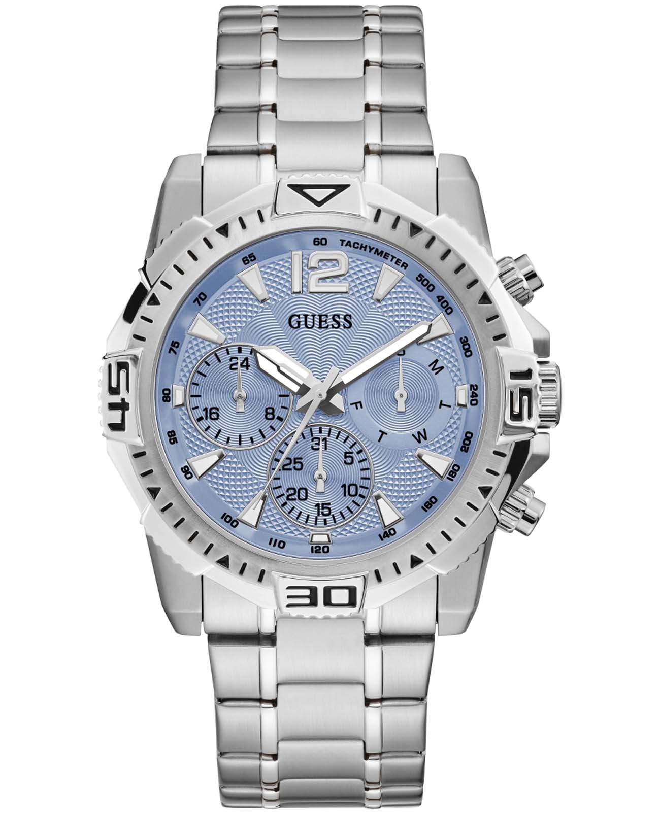 Часы Guess GW0056G2 представляют собой практичный и стильный аксессуар, который отлично дополнит ваш повседневный образ. Эти мужские часы оснащены надежным кварцевым механизмом и выполнены в прочном стальном корпусе. Диаметр корпуса составляет 43 мм с неподвижным безелемБезельВнешний ободок, закрепляющий стекло. В спортивных часах так называется поворотное кольцо с делениями на циферблате, выполняет роль таймера – замеряет отрезки времени на шкале. Неподвижный безель – элемент декора. Однонаправленно вращающийся безель на дайверских часах позволяет фиксировать моменты погружения и выныривания на поверхность., это придает им стильный и современный вид. Метки в виде штрихов и арабской цифры 12 подчеркивают элегантность модели. Часы также оснащены функцией отображения времени в 24-х часовом формате, а также тахиметромТахиметрРазмеченная шкала, располагается на ободке или безеле часов. Тахиметр позволяет рассчитать скорость на определённом участке пути, расстояние измеряется в километрах или милях., что делает их особенно удобными для повседневного использования. Люминесцентное покрытиеЛюминесцентное покрытиеПозволяет считывать показания времени в темноте. Производители наносят на стрелки, часовые индексы, безель или поверхность циферблата светонакопительный состав, дающий холодное свечение. на стрелках и метках обеспечивает отличную видимость в темноте. Рифленая заводная головка с защитой обеспечивает дополнительное удобство и надежность. Стальной браслет на раскладной застежкеРаскладная застёжкаТакой тип застёжки используется только на браслетах из металла. Она никогда не раскрывается полностью, происходит разделение на 2 и более частей. Раскладывающая застёжка снизит вероятность потери часов к минимуму.гарантирует комфорт и безопасность при носке. Минеральное стеклоМинеральное стеклоМинеральное стекло представляет собой искусственно выращенный минерал кварца. Такое стекло отличается особой устойчивостью к повреждениям и царапинам. Уступает по некоторым качествам сапфировому стеклу. защищает циферблат от царапин и других повреждений, а водозащита 50WR позволяет не беспокоиться о попадании воды при случайном контакте. Эти часы не только практичны, но и станут стильным дополнением вашего гардероба, подчеркивая вашу уверенность и внимание к деталям.