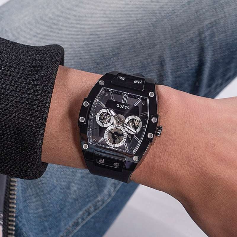 Женские наручные часы Guess Trend GW0203G3 С минеральным стекломМинеральное стеклоМинеральное стекло представляет собой искусственно выращенный минерал кварца. Такое стекло отличается особой устойчивостью к повреждениям и царапинам. Уступает по некоторым качествам сапфировому стеклу.. Кварцевый механизм с высокой точностью. Класс водозащиты: 50 метров, позволит защитить корпус от случайных брызг или капель дождя. Корпус часов изготовлен из пластика. Скелетонизированные. 12-ти и 24-х часовой формат времени. Метки в виде штрихов. Число и день недели отображаются на отдельных циферблатах.
