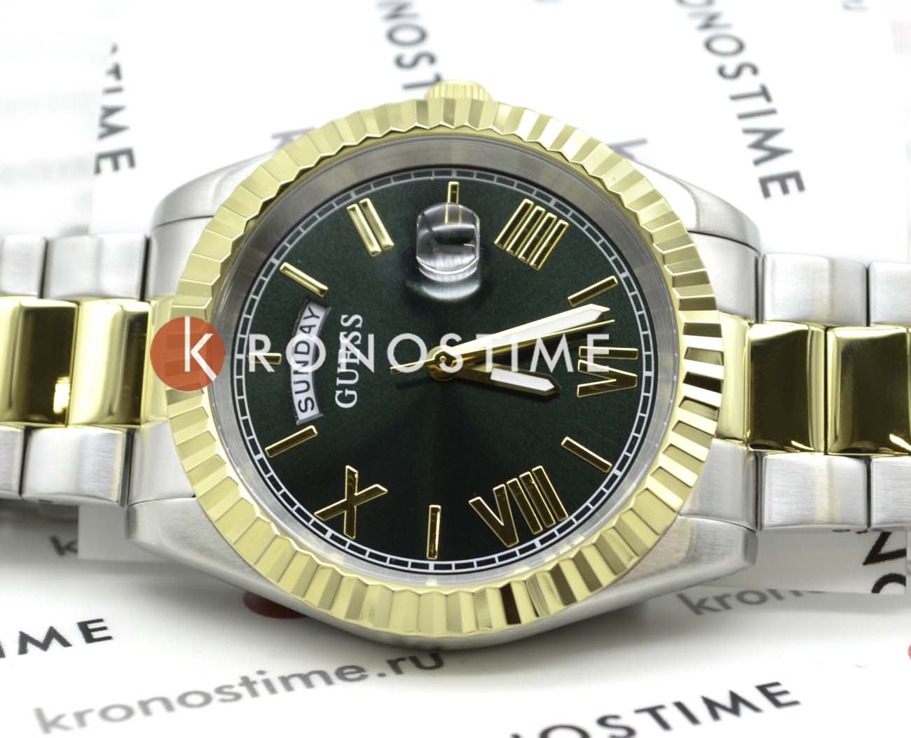 Мужские наручные часы в стиле fashion Guess GW0265G8 с минеральным стекломМинеральное стеклоМинеральное стекло представляет собой искусственно выращенный минерал кварца. Такое стекло отличается особой устойчивостью к повреждениям и царапинам. Уступает по некоторым качествам сапфировому стеклу., кварцевый механизм с высокой точностью. Класс водозащиты: 50 метров, позволит защитить корпус от случайных брызг или капель дождя. Корпус часов изготовлен из стали с IP-покрытиемIP-покрытиеМетод ионного напыления. Демонстрирует повышенную устойчивость к истиранию, окислению и химическим веществам. Под воздействием высокого давления и температуры около 1500°C молекулы металла надёжно соединяются с частицами корпуса часов.. Циферблат выполнен по технологии Sunray (солнечные лучи). Метки в виде штрихов и римских цифр. Окошко даты с увеличительным стеклом. День недели отображается в положении 12 часов. Браслет с раскладной застёжкойРаскладная застёжкаТакой тип застёжки используется только на браслетах из металла. Она никогда не раскрывается полностью, происходит разделение на 2 и более частей. Раскладывающая застёжка снизит вероятность потери часов к минимуму.