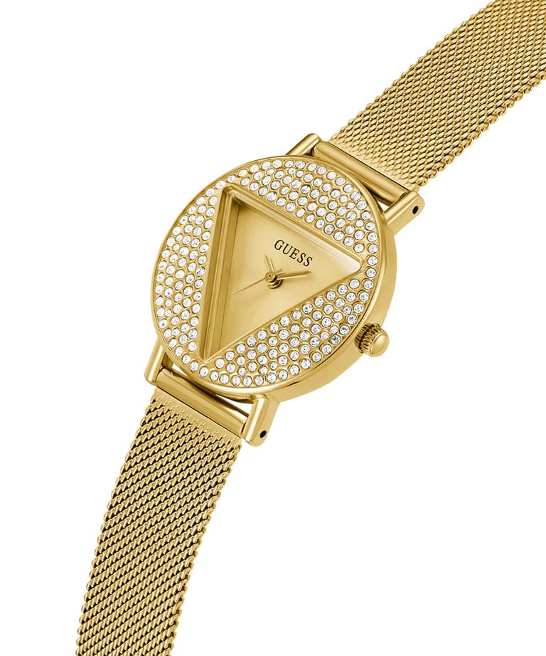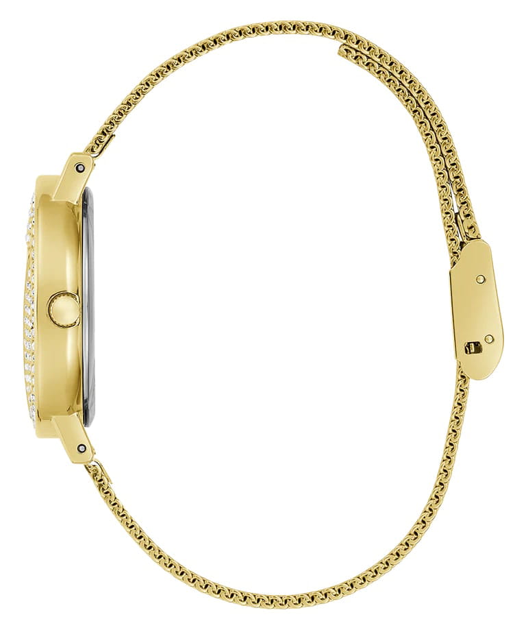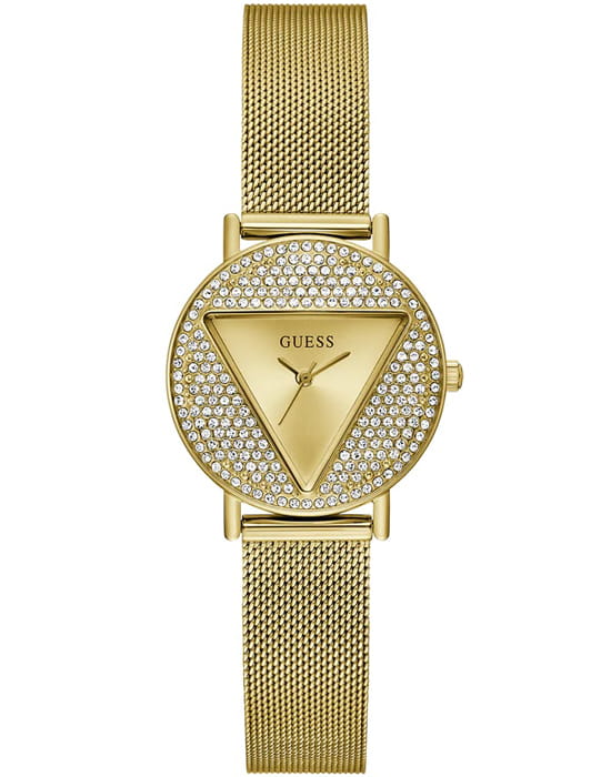 Женские наручные часы с минеральным стекломМинеральное стеклоМинеральное стекло представляет собой искусственно выращенный минерал кварца. Такое стекло отличается особой устойчивостью к повреждениям и царапинам. Уступает по некоторым качествам сапфировому стеклу. Guess GW0671L2, кварцевый механизм с высокой точностью. Класс водозащиты: 30 метров, позволит защитить корпус от случайных брызг или капель дождя. Корпус и браслет часов изготовлены из нержавеющей стали с IP-покрытиемIP-покрытиеМетод ионного напыления. Демонстрирует повышенную устойчивость к истиранию, окислению и химическим веществам. Под воздействием высокого давления и температуры около 1500°C молекулы металла надёжно соединяются с частицами корпуса часов..
