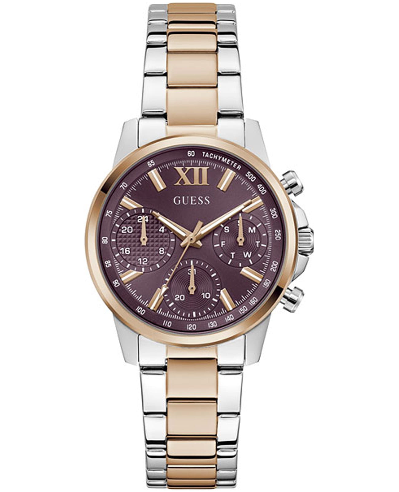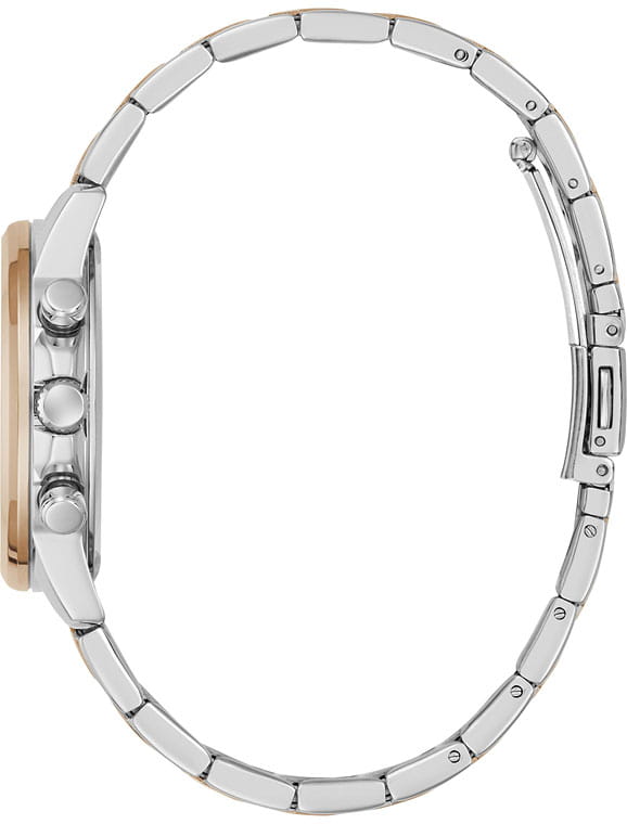 Элегантные женские наручные часы Guess GW0933L5 сочетают в себе стиль и функциональность. Эти часы оснащены точным кварцевым механизмом, что гарантирует надежность и долговечность. Корпус часов выполнен из прочной нержавеющей стали серебристого цвета, диаметром 36 мм. Неподвижный безельБезельВнешний ободок, закрепляющий стекло. В спортивных часах так называется поворотное кольцо с делениями на циферблате, выполняет роль таймера – замеряет отрезки времени на шкале. Неподвижный безель – элемент декора. Однонаправленно вращающийся безель на дайверских часах позволяет фиксировать моменты погружения и выныривания на поверхность. с PVD-покрытиемPVDУльтратонкое покрытие наносится в технике вакуумного напыления, сочетает в себе нитрид титана особой прочности со слоем золота или оксида хрома. Несёт в себе декоративную или защитную функцию. цвета розового золота придает роскошный вид. Циферблат Циферблат дополнен тахиметромТахиметрРазмеченная шкала, располагается на ободке или безеле часов. Тахиметр позволяет рассчитать скорость на определённом участке пути, расстояние измеряется в километрах или милях.. Часы оснащены стальным браслетом с частичным PVD-покрытиемPVDУльтратонкое покрытие наносится в технике вакуумного напыления, сочетает в себе нитрид титана особой прочности со слоем золота или оксида хрома. Несёт в себе декоративную или защитную функцию. на раскладной застёжкеРаскладная застёжкаТакой тип застёжки используется только на браслетах из металла. Она никогда не раскрывается полностью, происходит разделение на 2 и более частей. Раскладывающая застёжка снизит вероятность потери часов к минимуму., которая обеспечивает комфортное прилегание к запястью и надежную фиксацию. Минеральное стеклоМинеральное стеклоМинеральное стекло представляет собой искусственно выращенный минерал кварца. Такое стекло отличается особой устойчивостью к повреждениям и царапинам. Уступает по некоторым качествам сапфировому стеклу. защищает циферблат от царапин и повреждений, сохраняя его безупречный вид. 12-ти и 24-х часовой формат. Рифленая заводная головка с защитой. Водозащита 30WR гарантирует защиту от случайных брызг и дождя, что делает эти часы практичным аксессуаром для повседневной жизни. Люминесцентное покрытиеЛюминесцентное покрытиеПозволяет считывать показания времени в темноте. Производители наносят на стрелки, часовые индексы, безель или поверхность циферблата светонакопительный состав, дающий холодное свечение. на стрелках и метках обеспечивает отличную видимость в темноте. Guess – это не просто аксессуар, это заявление о вашем безупречном вкусе и стремлении к совершенству.