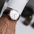 Мужские наручные часы Hamilton Jazzmaster Gent Quartz H32441551 с надёжным кварцевым механизмом. Корпус часов изготовлен из нержавеющей стали. Кожаный ремешок на стандартной застёжке. Окошко даты находится в положении 3 часа. Стрелки и метки с люминесцентным покрытиемЛюминесцентное покрытиеПозволяет считывать показания времени в темноте. Производители наносят на стрелки, часовые индексы, безель или поверхность циферблата светонакопительный состав, дающий холодное свечение.. Сапфировое стеклоСапфировое стеклоПрочный и надёжный материал из кристалла сапфира синтетического происхождения, характеризующийся особой твёрдостью и устойчивостью к царапинам и повреждениям. с антибликовым покрытием, устойчивое к мелким механическим повреждениям. Класс водозащиты: 50 метров, позволит защитить корпус от случайных брызг или капель дождя. БезельБезельВнешний ободок, закрепляющий стекло. В спортивных часах так называется поворотное кольцо с делениями на циферблате, выполняет роль таймера – замеряет отрезки времени на шкале. Неподвижный безель – элемент декора. Однонаправленно вращающийся безель на дайверских часах позволяет фиксировать моменты погружения и выныривания на поверхность. с PVD-покрытиемPVDУльтратонкое покрытие наносится в технике вакуумного напыления, сочетает в себе нитрид титана особой прочности со слоем золота или оксида хрома. Несёт в себе декоративную или защитную функцию..