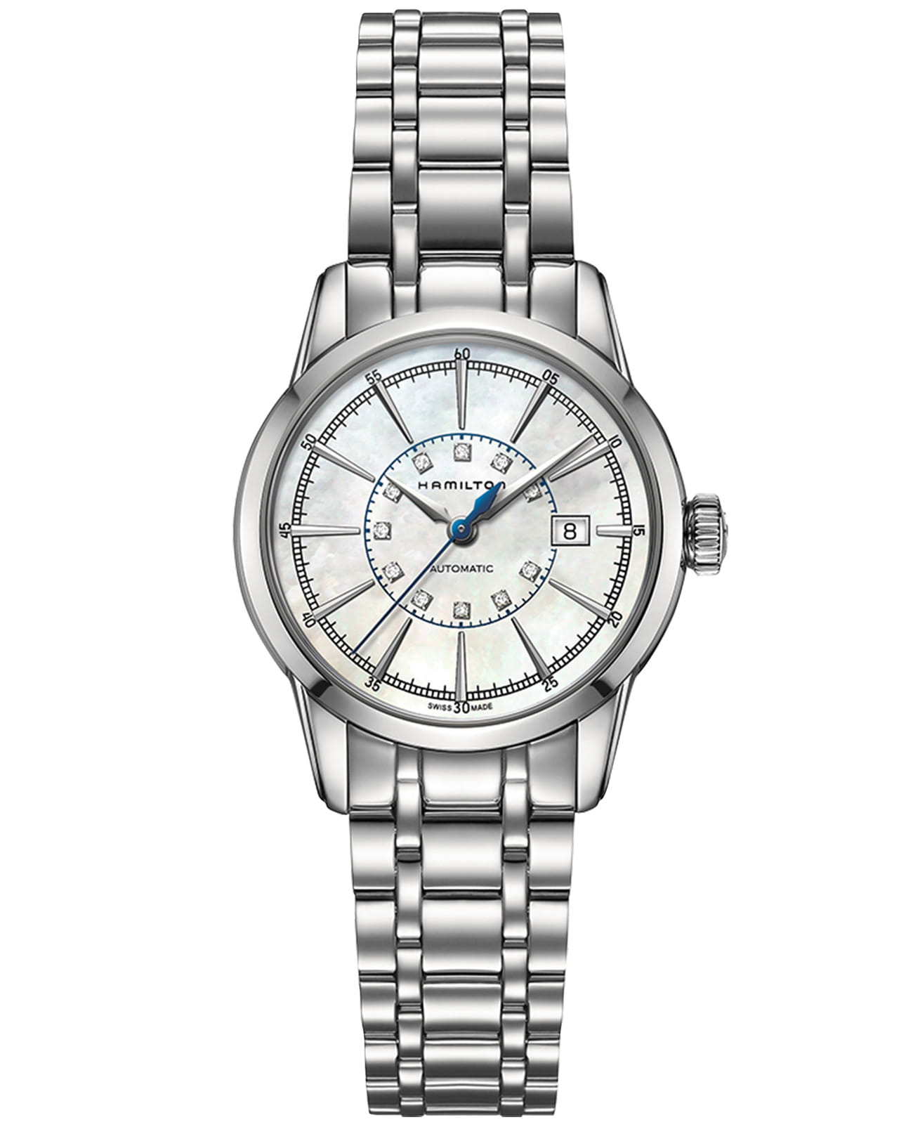 Женские швейцарские часы с бриллиантами Hamilton American Classic RailRoad Lady Auto H40405191, механический механизм (автоматический калибр) с высокой точностью. Сапфировое стекло устойчивое к появлению царапин, обладающее высокой прозрачностью. Класс водозащиты: 50 метров, позволит защитить корпус от случайных брызг или капель дождя. Корпус часов изготовлен из стали, серебристого цвета.