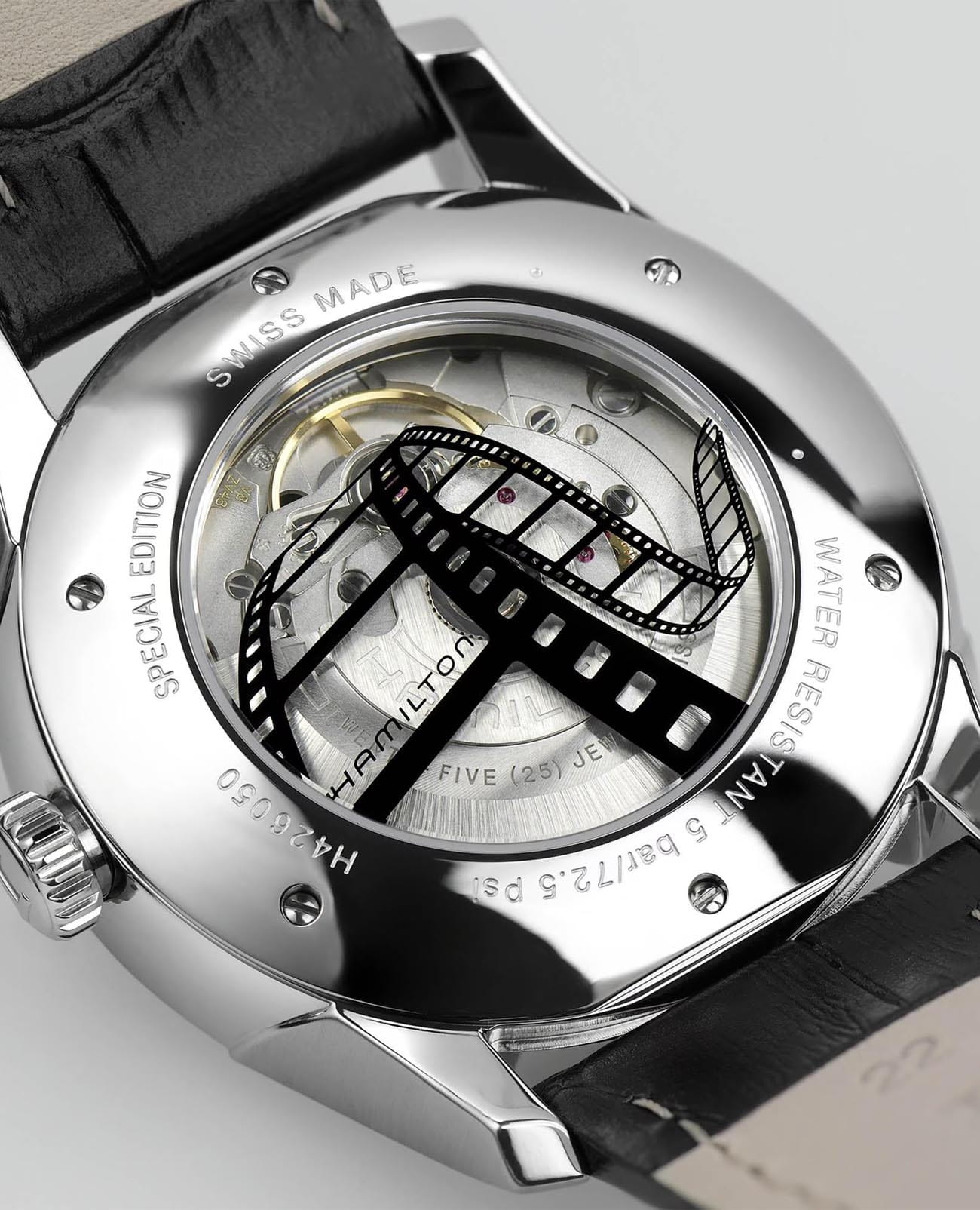 Мужские наручные часы Hamilton Jazzmaster Regulator Cinema H42605731 с автоматическим механизмом. Корпус выполнен из нержавеющей стали. Сапфировое стеклоСапфировое стеклоПрочный и надёжный материал из кристалла сапфира синтетического происхождения, характеризующийся особой твёрдостью и устойчивостью к царапинам и повреждениям. устойчивое к мелким механическим повреждениям. Класс водозащиты: 50 метров, позволит защитить корпус от случайных брызг или капель дождя.Практичный кожаный ремешок с раскладной застёжкойРаскладная застёжкаТакой тип застёжки используется только на браслетах из металла. Она никогда не раскрывается полностью, происходит разделение на 2 и более частей. Раскладывающая застёжка снизит вероятность потери часов к минимуму.. Дополнительные циферблаты часовой и минутной стрелок выполнены в видео катушек с пленкой.