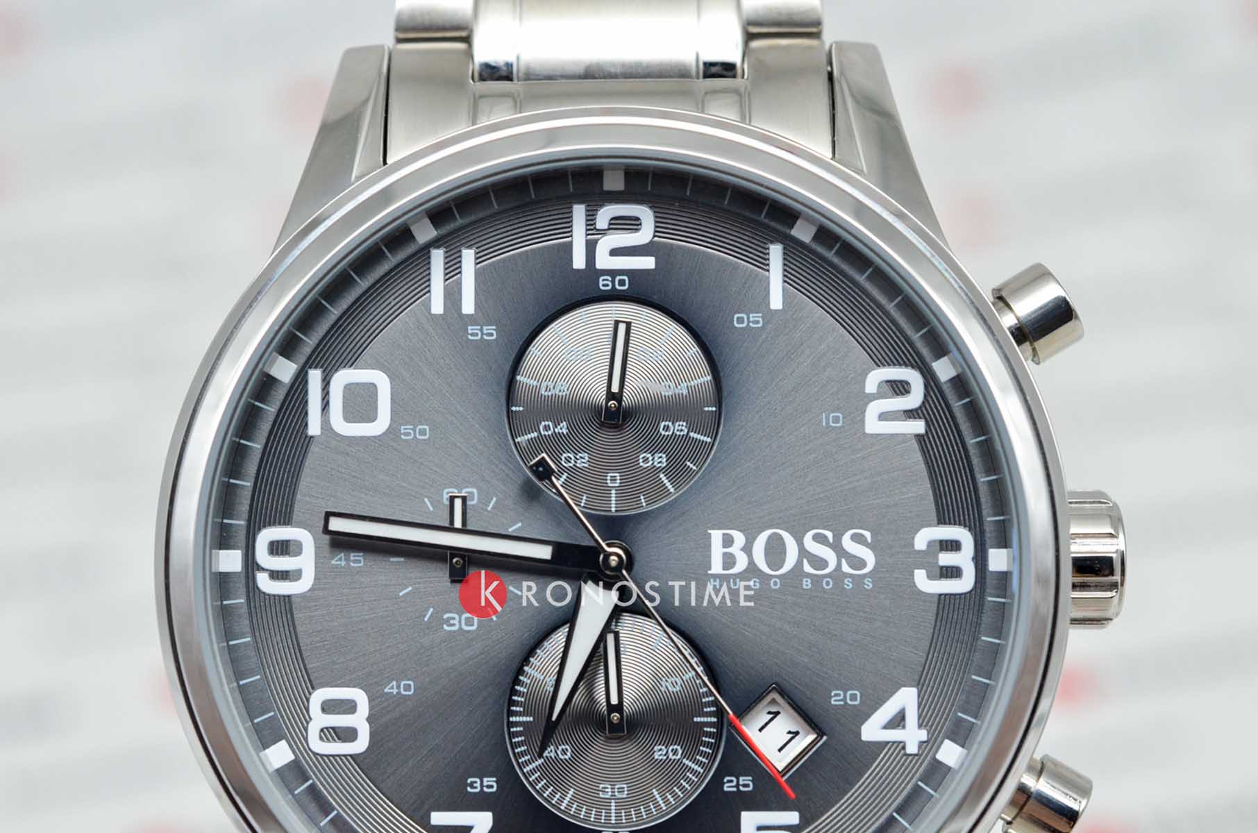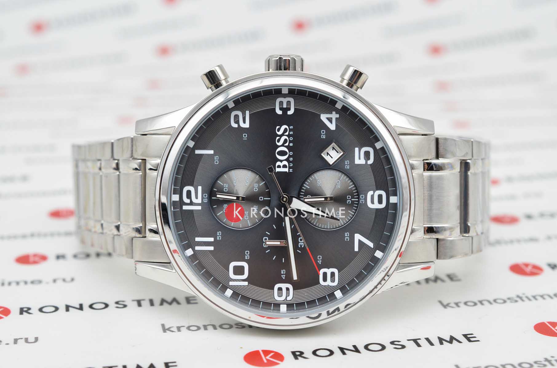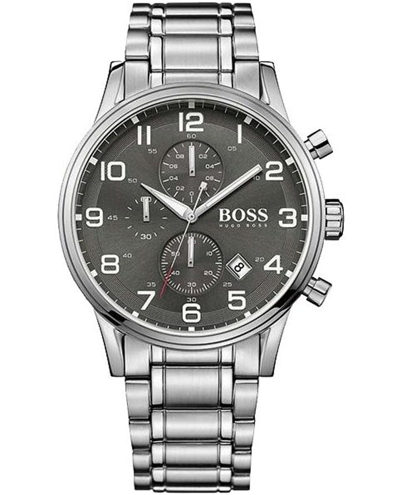 Мужские изысканные часы Hugo Boss Aeroliner HB1513181 сочетают спортивный стиль с функциональностью в корпусе из нержавеющей стали диаметром 44 мм с прочным минеральным стекломМинеральное стеклоМинеральное стекло представляет собой искусственно выращенный минерал кварца. Такое стекло отличается особой устойчивостью к повреждениям и царапинам. Уступает по некоторым качествам сапфировому стеклу., устойчивым к царапинам. Модель оснащена точным кварцевым механизмом с функциями хронографаХронографФункция позволяет измерять отрезки времени с особой точностью: часы, минуты, секунды. Верным признаком хронографа является наличие на циферблате 3 дополнительных окошек-счётчиков. и календарём (индикация даты), а также арабскими метками на чёрном стильном циферблате для оптимальной читаемости. Люминесцентное покрытиеЛюминесцентное покрытиеПозволяет считывать показания времени в темноте. Производители наносят на стрелки, часовые индексы, безель или поверхность циферблата светонакопительный состав, дающий холодное свечение. на стрелках обеспечивает превосходную читаемость показаний даже в самых темных условиях.Стальной браслет на раскладной застежкеРаскладная застёжкаТакой тип застёжки используется только на браслетах из металла. Она никогда не раскрывается полностью, происходит разделение на 2 и более частей. Раскладывающая застёжка снизит вероятность потери часов к минимуму. гарантирует комфорт и безопасность при носке, а водонепроницаемость WR50 (5 атм) защищает от брызг воды и дождя. Эта модель – отличный выбор для тех, кто ищет сочетание стиля, качества и функциональности. Часы станут не только полезным аксессуаром, но и выразительным элементом вашего имиджа.