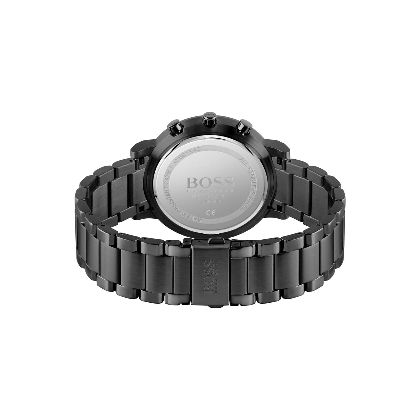 Мужские элегантные часы Hugo Boss Integrity HB1513780 представлены в круглом 43-мм корпусе из нержавеющей стали с IP-покрытиемIP-покрытиеМетод ионного напыления. Демонстрирует повышенную устойчивость к истиранию, окислению и химическим веществам. Под воздействием высокого давления и температуры около 1500°C молекулы металла надёжно соединяются с частицами корпуса часов., оснащены высокоточным кварцевым механизмом с функциями хронографаХронографФункция позволяет измерять отрезки времени с особой точностью: часы, минуты, секунды. Верным признаком хронографа является наличие на циферблате 3 дополнительных окошек-счётчиков., секундомераСекундомерСекундоме́р — прибор, способный измерять интервалы времени с точностью до долей секунды. и индикацией даты на позиции 4 часа. Черный изысканный циферблат с контрастными золотистыми стрелками защищен устойчивым к царапинам минеральным стекломМинеральное стеклоМинеральное стекло представляет собой искусственно выращенный минерал кварца. Такое стекло отличается особой устойчивостью к повреждениям и царапинам. Уступает по некоторым качествам сапфировому стеклу.. Браслет из стали с IP-покрытиемIP-покрытиеМетод ионного напыления. Демонстрирует повышенную устойчивость к истиранию, окислению и химическим веществам. Под воздействием высокого давления и температуры около 1500°C молекулы металла надёжно соединяются с частицами корпуса часов. дополнен раскладной застёжкойРаскладная застёжкаТакой тип застёжки используется только на браслетах из металла. Она никогда не раскрывается полностью, происходит разделение на 2 и более частей. Раскладывающая застёжка снизит вероятность потери часов к минимуму.. Водонепроницаемость 50 метров (5 ATM) обеспечивает защиту от брызг воды и дождя. Точность хода составляет ±15 секунд в месяц, что соответствует стандартам кварцевых механизмов. Эти часы не только практичны, но и станут стильным дополнением вашего гардероба, подчеркивая вашу уверенность и внимание к деталям.