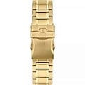 Кварцевый механизм с высокой точностью. Минеральное стеклоМинеральное стеклоМинеральное стекло представляет собой искусственно выращенный минерал кварца. Такое стекло отличается особой устойчивостью к повреждениям и царапинам. Уступает по некоторым качествам сапфировому стеклу. устойчивое к появлению царапин, обладающее высокой прозрачностью. Класс водозащиты: 100 метров, позволит плавать, нырять и заниматься другими водными видами спорта. Корпус часов изготовлен из нержавеющей стали с PVD-покрытиемPVDУльтратонкое покрытие наносится в технике вакуумного напыления, сочетает в себе нитрид титана особой прочности со слоем золота или оксида хрома. Несёт в себе декоративную или защитную функцию.. Стрелки с люминесцентным покрытиемЛюминесцентное покрытиеПозволяет считывать показания времени в темноте. Производители наносят на стрелки, часовые индексы, безель или поверхность циферблата светонакопительный состав, дающий холодное свечение.. Браслет из стали с PVD-покрытиемPVDУльтратонкое покрытие наносится в технике вакуумного напыления, сочетает в себе нитрид титана особой прочности со слоем золота или оксида хрома. Несёт в себе декоративную или защитную функцию. на раскладной застёжкеРаскладная застёжкаТакой тип застёжки используется только на браслетах из металла. Она никогда не раскрывается полностью, происходит разделение на 2 и более частей. Раскладывающая застёжка снизит вероятность потери часов к минимуму..