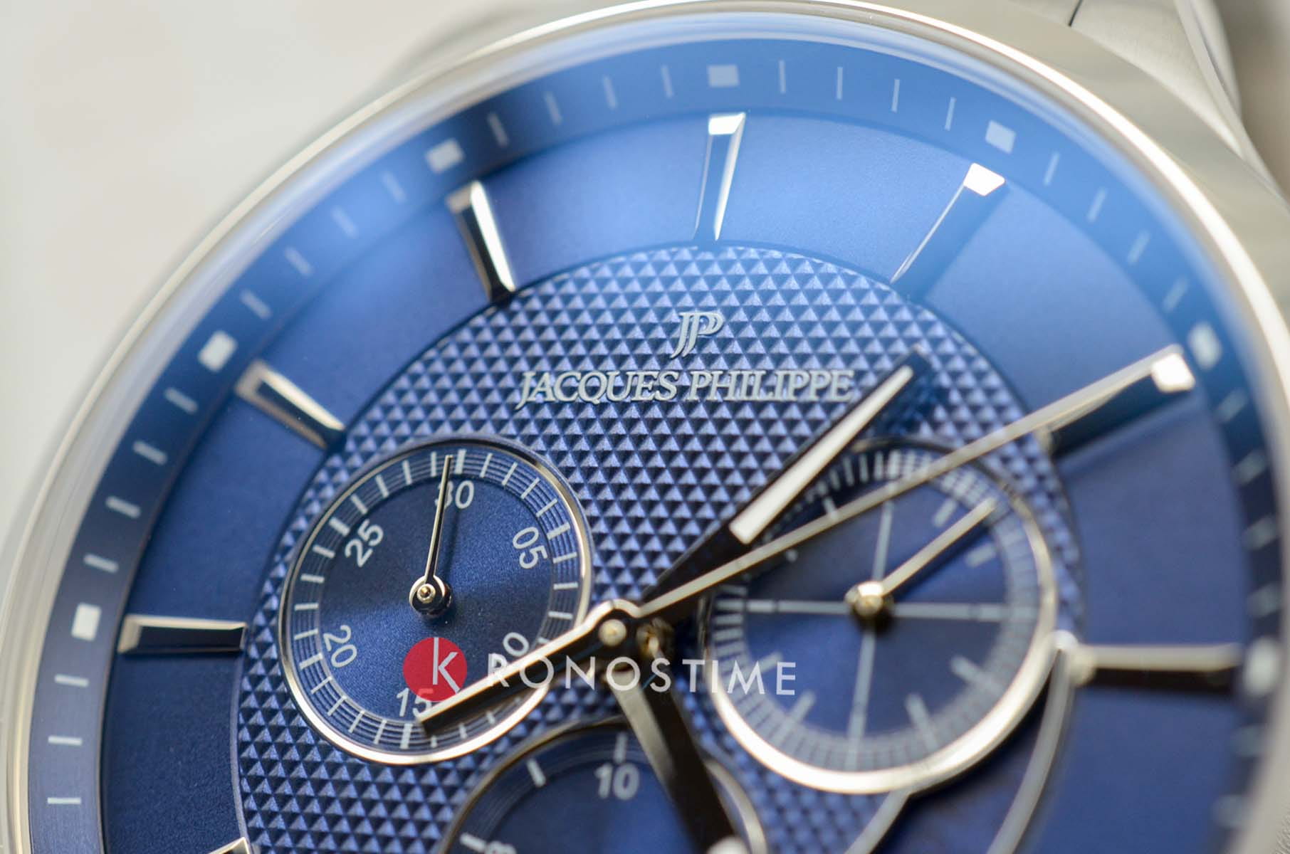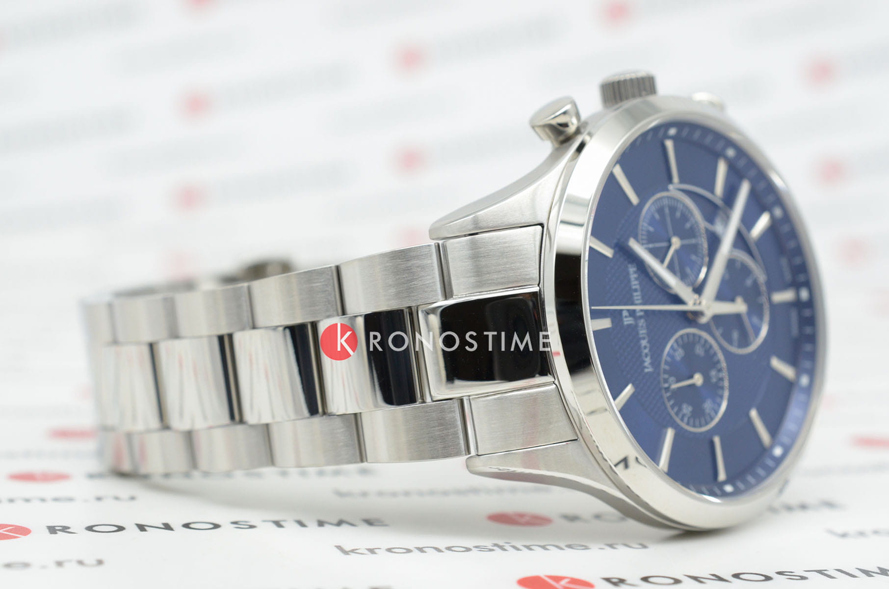 Часы Jacques Philippe Apollo JPQGC031336N — это гармоничное сочетание элегантного дизайна, современных швейцарских технологий и безупречного качества исполнения. Кварцевый механизм Ronda 5040.D.0001 обеспечивает точность хода. Модель оснащена точным кварцевым механизмом с функцией хронографаХронографФункция позволяет измерять отрезки времени с особой точностью: часы, минуты, секунды. Верным признаком хронографа является наличие на циферблате 3 дополнительных окошек-счётчиков. с секундомеромСекундомерСекундоме́р — прибор, способный измерять интервалы времени с точностью до долей секунды., что позволяет не только отслеживать время, но и использовать дополнительные возможности для активного образа жизни. Корпус диаметром 43 мм выполнен из прочной нержавеющей стали 316L, а сапфировое стеклоСапфировое стеклоПрочный и надёжный материал из кристалла сапфира синтетического происхождения, характеризующийся особой твёрдостью и устойчивостью к царапинам и повреждениям. надежно защищает синий циферблат от царапин и других повреждений. Окошко даты расположено между отметками 4 и 5 часов, что добавляет удобства в повседневном использовании. Для удобства использования в темное время суток предусмотрено люминесцентное покрытиеЛюминесцентное покрытиеПозволяет считывать показания времени в темноте. Производители наносят на стрелки, часовые индексы, безель или поверхность циферблата светонакопительный состав, дающий холодное свечение. стрелок. Браслет из нержавеющей стали подчеркивает современный стиль изделия, а застежка «бабочка»Застёжка "бабочка"Такой вид застёжки дополняется предохранителями, помогающими избежать случайного раскрытия браслета. Обладают изящным исполнением. , раскладывающаяся при нажатии кнопок двойной блокировки, обеспечивает комфортное ношение и надежную фиксацию на запястье. Водозащита до 5 атмосфер позволяет не беспокоиться о случайных брызгах и дождевых каплях.