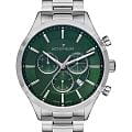 Часы Jacques Philippe Apollo JPQGC0313X6N — это гармоничное сочетание элегантного дизайна, современных швейцарских технологий и безупречного качества исполнения. Кварцевый механизм Ronda 5040.D.0001 обеспечивает точность хода. Модель оснащена точным кварцевым механизмом с функцией хронографаХронографФункция позволяет измерять отрезки времени с особой точностью: часы, минуты, секунды. Верным признаком хронографа является наличие на циферблате 3 дополнительных окошек-счётчиков. с секундомеромСекундомерСекундоме́р — прибор, способный измерять интервалы времени с точностью до долей секунды., что позволяет не только отслеживать время, но и использовать дополнительные возможности для активного образа жизни. Корпус диаметром 43 мм выполнен из прочной нержавеющей стали 316L, а сапфировое стеклоСапфировое стеклоПрочный и надёжный материал из кристалла сапфира синтетического происхождения, характеризующийся особой твёрдостью и устойчивостью к царапинам и повреждениям. надежно защищает зеленый циферблат от царапин и других повреждений. Окошко даты расположено между отметками 4 и 5 часов, что добавляет удобства в повседневном использовании. Для удобства использования в темное время суток предусмотрено люминесцентное покрытиеЛюминесцентное покрытиеПозволяет считывать показания времени в темноте. Производители наносят на стрелки, часовые индексы, безель или поверхность циферблата светонакопительный состав, дающий холодное свечение. стрелок. Браслет из нержавеющей стали подчеркивает современный стиль изделия, а застежка «бабочка»Застёжка "бабочка"Такой вид застёжки дополняется предохранителями, помогающими избежать случайного раскрытия браслета. Обладают изящным исполнением. , раскладывающаяся при нажатии кнопок двойной блокировки, обеспечивает комфортное ношение и надежную фиксацию на запястье. Водозащита до 5 атмосфер позволяет не беспокоиться о случайных брызгах и дождевых каплях.