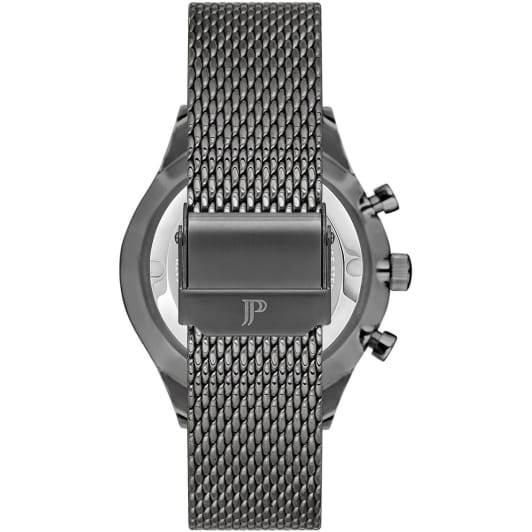 Швейцарские мужские часы-хронографХронографФункция позволяет измерять отрезки времени с особой точностью: часы, минуты, секунды. Верным признаком хронографа является наличие на циферблате 3 дополнительных окошек-счётчиков. Jacques Philippe Gallant JPQGC038247, кварцевый механизм с высокой точностью. Сапфировое стеклоСапфировое стеклоПрочный и надёжный материал из кристалла сапфира синтетического происхождения, характеризующийся особой твёрдостью и устойчивостью к царапинам и повреждениям. устойчивое к появлению царапин, обладающее высокой прозрачностью. Корпус часов изготовлен из стали с IP-покрытиемIP-покрытиеМетод ионного напыления. Демонстрирует повышенную устойчивость к истиранию, окислению и химическим веществам. Под воздействием высокого давления и температуры около 1500°C молекулы металла надёжно соединяются с частицами корпуса часов.. На циферблате три дополнительных индикатора. Стрелки с люминесцентным покрытиемЛюминесцентное покрытиеПозволяет считывать показания времени в темноте. Производители наносят на стрелки, часовые индексы, безель или поверхность циферблата светонакопительный состав, дающий холодное свечение.. Окошко даты находится между 4 и 5 часами. Класс водозащиты: 50 метров, позволит защитить корпус от случайных брызг или капель дождя. Стальной браслет миланского плетения с IP-покрытиемIP-покрытиеМетод ионного напыления. Демонстрирует повышенную устойчивость к истиранию, окислению и химическим веществам. Под воздействием высокого давления и температуры около 1500°C молекулы металла надёжно соединяются с частицами корпуса часов. на раскладном замкеРаскладной замокДанный вариант застежки используется только на часах с металлическим браслетом. Отличительная особенность такого крепления в том, что длина браслета становится универсальной и вы можете самостоятельно отрегулировать нужный вам размер – застежка просто двигается по браслету часов..
