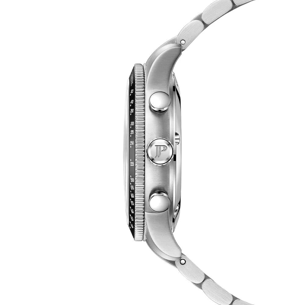 Швейцарские наручные часы Jacques Philippe JPQGC691316 сочетают в себе современный дизайн, надежность и функциональность, это стильные швейцарские часы с функцией хронографаХронографФункция позволяет измерять отрезки времени с особой точностью: часы, минуты, секунды. Верным признаком хронографа является наличие на циферблате 3 дополнительных окошек-счётчиков. и секундомераСекундомерСекундоме́р — прибор, способный измерять интервалы времени с точностью до долей секунды.. Корпус круглой формы диаметром 42 мм выполнен из прочной нержавеющей стали, а безельБезельВнешний ободок, закрепляющий стекло. В спортивных часах так называется поворотное кольцо с делениями на циферблате, выполняет роль таймера – замеряет отрезки времени на шкале. Неподвижный безель – элемент декора. Однонаправленно вращающийся безель на дайверских часах позволяет фиксировать моменты погружения и выныривания на поверхность. с элегантным черным IP-покрытиемIP-покрытиеМетод ионного напыления. Демонстрирует повышенную устойчивость к истиранию, окислению и химическим веществам. Под воздействием высокого давления и температуры около 1500°C молекулы металла надёжно соединяются с частицами корпуса часов.. Сапфировое стеклоСапфировое стеклоПрочный и надёжный материал из кристалла сапфира синтетического происхождения, характеризующийся особой твёрдостью и устойчивостью к царапинам и повреждениям. с антибликовым покрытиемАнтибликовое покрытиеСлой оксида металла в 0,13-0,3 микрон, благодаря которому стекло часов не бликует и не отражает свет. Антибликовое покрытие уменьшает отражение света в 10 раз, обеспечивая отличную читаемость показателей циферблата. надежно защищает черный циферблат от царапин и повреждений. Модель оснащена точным кварцевым механизмом, а также дополнительными функциями — тахиметромТахиметрРазмеченная шкала, располагается на ободке или безеле часов. Тахиметр позволяет рассчитать скорость на определённом участке пути, расстояние измеряется в километрах или милях. и индикатором даты, что делает часы не только стильным аксессуаром, но и практичным помощником на каждый день. Серебряный браслет шириной 22 мм удобно фиксируется на запястье с помощью застежки «бабочка»Застёжка "бабочка"Такой вид застёжки дополняется предохранителями, помогающими избежать случайного раскрытия браслета. Обладают изящным исполнением. . Стрелки имеют люминесцентное покрытиеЛюминесцентное покрытиеПозволяет считывать показания времени в темноте. Производители наносят на стрелки, часовые индексы, безель или поверхность циферблата светонакопительный состав, дающий холодное свечение. для удобства чтения времени в темноте. Водозащита 5 АТМ позволяет не снимать часы при дожде и случайных контактах с водой.