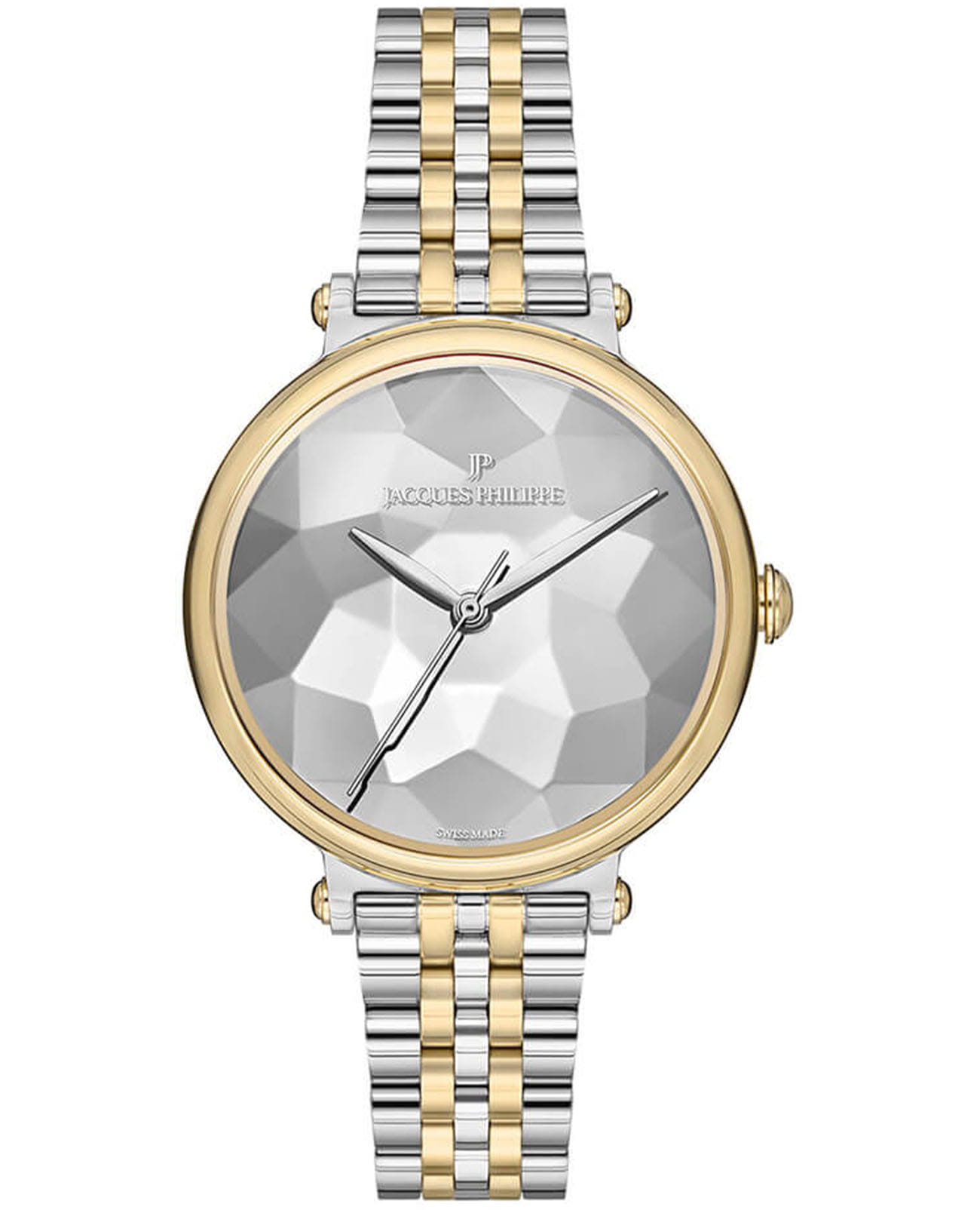 Швейцарские женские часы Jacques Philippe Cosmo JPQLS1173X8, кварцевый механизм с высокой точностью. Сапфировое стеклоСапфировое стеклоПрочный и надёжный материал из кристалла сапфира синтетического происхождения, характеризующийся особой твёрдостью и устойчивостью к царапинам и повреждениям. устойчивое к появлению царапин, обладающее высокой прозрачностью.Браслет часов изготовлен из нержавеющей стали на застёжке-бабочке с кнопкамиЗастёжка "бабочка"Такой вид застёжки дополняется предохранителями, помогающими избежать случайного раскрытия браслета. Обладают изящным исполнением. с частичным IP-покрытиемIP-покрытиеМетод ионного напыления. Демонстрирует повышенную устойчивость к истиранию, окислению и химическим веществам. Под воздействием высокого давления и температуры около 1500°C молекулы металла надёжно соединяются с частицами корпуса часов.. Класс водозащиты: 50 метров, позволит защитить корпус от случайных брызг или капель дождя. Корпус часов изготовлен из нержавеющей стали. БезельБезельВнешний ободок, закрепляющий стекло. В спортивных часах так называется поворотное кольцо с делениями на циферблате, выполняет роль таймера – замеряет отрезки времени на шкале. Неподвижный безель – элемент декора. Однонаправленно вращающийся безель на дайверских часах позволяет фиксировать моменты погружения и выныривания на поверхность. с IP-покрытиемIP-покрытиеМетод ионного напыления. Демонстрирует повышенную устойчивость к истиранию, окислению и химическим веществам. Под воздействием высокого давления и температуры около 1500°C молекулы металла надёжно соединяются с частицами корпуса часов..