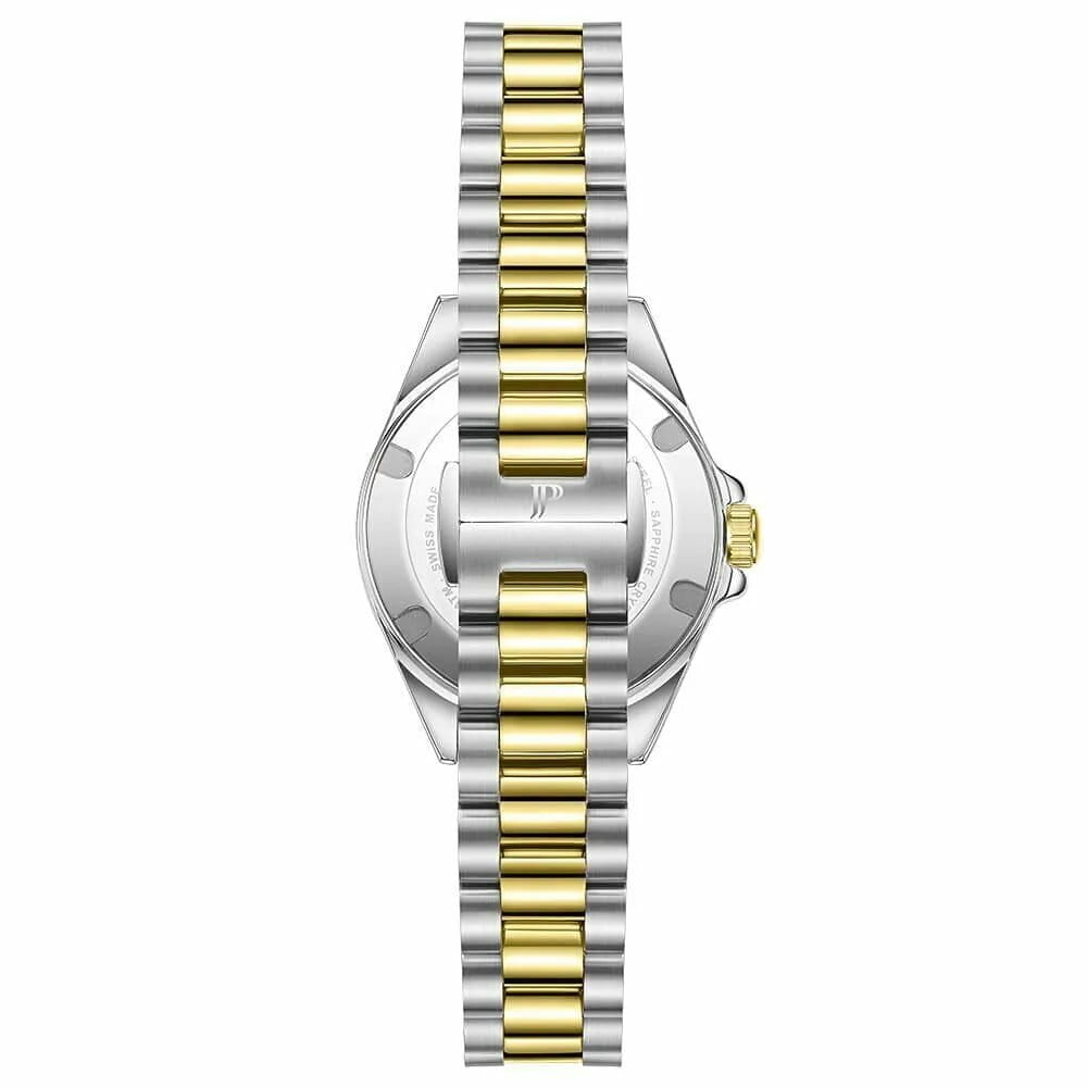 Часы Jacques Philippe JPQLS737388YG из коллекции Infinitum — элегантные женские  часы, сочетающие в себе швейцарское качество и современный дизайн. Корпус диаметром 30 мм выполнен из нержавеющей стали, а циферблат защищён сапфировым стекломСапфировое стеклоПрочный и надёжный материал из кристалла сапфира синтетического происхождения, характеризующийся особой твёрдостью и устойчивостью к царапинам и повреждениям.. БезельБезельВнешний ободок, закрепляющий стекло. В спортивных часах так называется поворотное кольцо с делениями на циферблате, выполняет роль таймера – замеряет отрезки времени на шкале. Неподвижный безель – элемент декора. Однонаправленно вращающийся безель на дайверских часах позволяет фиксировать моменты погружения и выныривания на поверхность. с PVD-покрытиемPVDУльтратонкое покрытие наносится в технике вакуумного напыления, сочетает в себе нитрид титана особой прочности со слоем золота или оксида хрома. Несёт в себе декоративную или защитную функцию.. Циферблат инкрустирован кристаллами. Внутри установлен швейцарский кварцевый механизм, обеспечивающий высокую точность хода. Водозащита 100 метров (10 ATM) позволяет использовать часы для плавания и других водных видов спорта. Браслет из нержавеющей стали с PVD-покрытиемPVDУльтратонкое покрытие наносится в технике вакуумного напыления, сочетает в себе нитрид титана особой прочности со слоем золота или оксида хрома. Несёт в себе декоративную или защитную функцию. и застёжкой бабочкаЗастёжка "бабочка"Такой вид застёжки дополняется предохранителями, помогающими избежать случайного раскрытия браслета. Обладают изящным исполнением. обеспечивает комфортное ношение и надёжную фиксацию на запястье. Эти часы идеально подойдут для тех, кто ценит сочетание классического стиля и современных технологий.