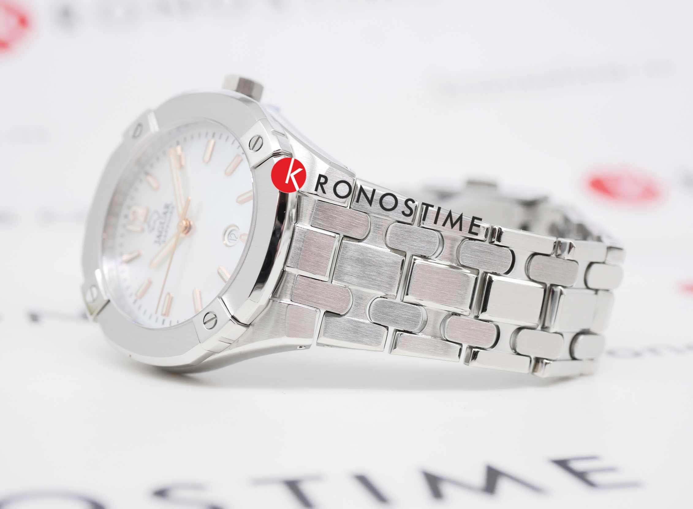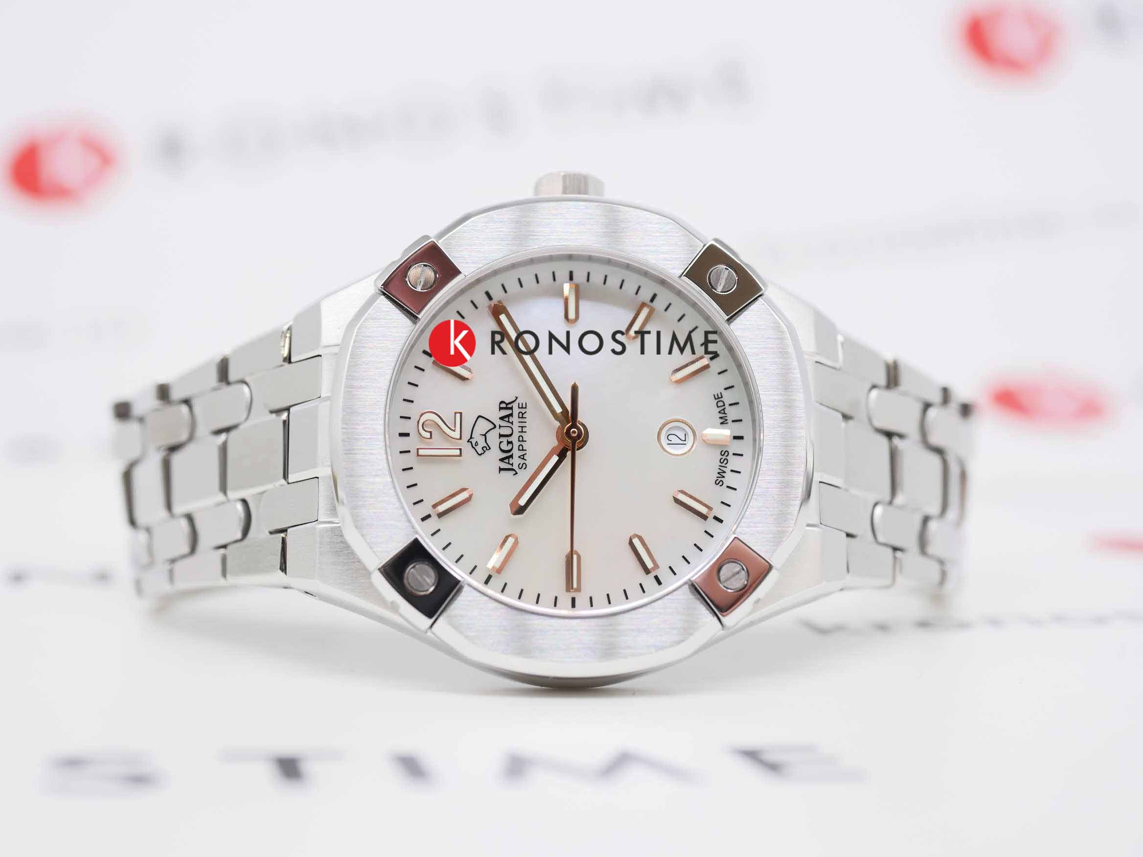 Женские швейцарские часы Jaguar Diplomatic Lady J1016/1. Кварцевый швейцарский калибр Ronda Harley 785. Сапфировое стеклоСапфировое стеклоПрочный и надёжный материал из кристалла сапфира синтетического происхождения, характеризующийся особой твёрдостью и устойчивостью к царапинам и повреждениям. устойчивое к мелким механическим повреждениям. Корпус и браслет часов изготовлены из нержавеющей стали. Стрелки и метки с люминесцентным покрытиемЛюминесцентное покрытиеПозволяет считывать показания времени в темноте. Производители наносят на стрелки, часовые индексы, безель или поверхность циферблата светонакопительный состав, дающий холодное свечение.. Окошко даты находится в положении 6 часов. Класс водозащиты: 100 метров, позволит плавать, нырять и заниматься другими водными видами спорта. Стальной браслет на раскладной застёжкеРаскладная застёжкаТакой тип застёжки используется только на браслетах из металла. Она никогда не раскрывается полностью, происходит разделение на 2 и более частей. Раскладывающая застёжка снизит вероятность потери часов к минимуму..