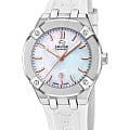 Женские швейцарские часы Jaguar Quartz Diplomatic Lady J1017/1. Кварцевый швейцарский калибр Ronda Harley 785. Сапфировое стеклоСапфировое стеклоПрочный и надёжный материал из кристалла сапфира синтетического происхождения, характеризующийся особой твёрдостью и устойчивостью к царапинам и повреждениям. устойчивое к мелким механическим повреждениям. Корпус часов изготовлен из нержавеющей стали. Стрелки и метки с люминесцентным покрытиемЛюминесцентное покрытиеПозволяет считывать показания времени в темноте. Производители наносят на стрелки, часовые индексы, безель или поверхность циферблата светонакопительный состав, дающий холодное свечение.. Окошко даты находится в положении 6 часов. Класс водозащиты: 100 метров, позволит плавать, нырять и заниматься другими водными видами спорта. Силиконовый ремешок на стандартной застёжке.