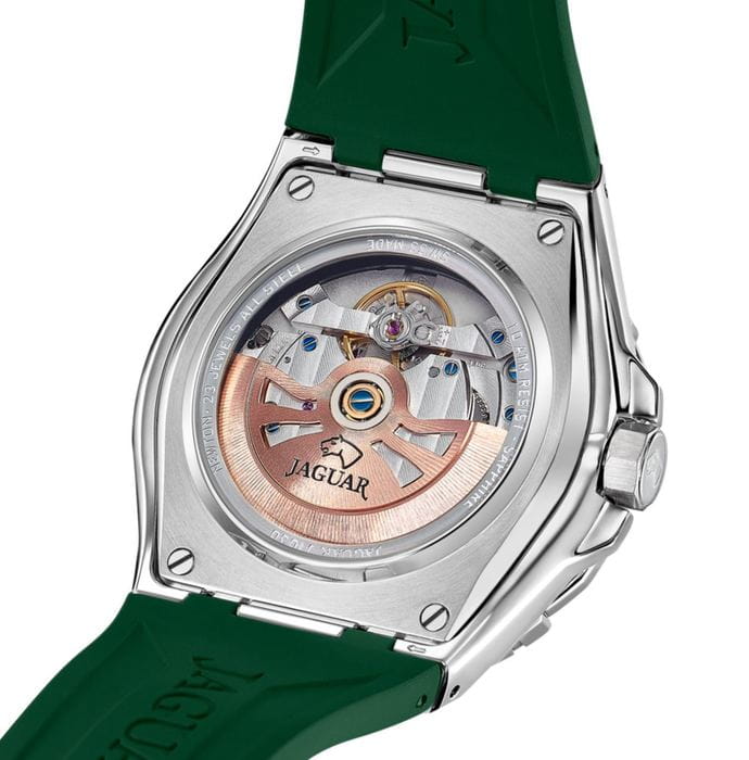 Мужские швейцарские часы Jaguar Diplomatic J1030/3 представляют собой воплощение высокого часового искусства. Они оснащены механическим механизмом с автоподзаводом, что обеспечивает точность и надёжность работы. Часы защищены сапфировым стекломСапфировое стеклоПрочный и надёжный материал из кристалла сапфира синтетического происхождения, характеризующийся особой твёрдостью и устойчивостью к царапинам и повреждениям., устойчивым к мелким механическим повреждениям, что гарантирует сохранность механизма. Корпус часов выполнен из нержавеющей стали, придающий ему прочность и долговечность. Стрелки и метки часов покрыты люминесцентным составомЛюминесцентное покрытиеПозволяет считывать показания времени в темноте. Производители наносят на стрелки, часовые индексы, безель или поверхность циферблата светонакопительный состав, дающий холодное свечение., обеспечивающий их хорошую видимость в условиях недостаточной освещённости. Окошко даты расположено в положении 6 часов. Класс водозащиты часов составляет 100 метров, что позволяет плавать, нырять и заниматься другими водными видами спорта. Изысканный каучуковый ремешок на стандартной застежке, что обеспечивает удобство и комфорт при ношении. Стильный циферблат и изысканные детали делают эти часы незаменимым аксессуаром для любого случая, от официальных мероприятий до повседневного использования.