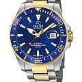 Мужские швейцарские часы Jaguar Automatic Diver J887/1. Автоматический швейцарский калибр ETA 2824-2. Сапфировое стеклоСапфировое стеклоПрочный и надёжный материал из кристалла сапфира синтетического происхождения, характеризующийся особой твёрдостью и устойчивостью к царапинам и повреждениям. устойчивое к мелким механическим повреждениям. Корпус часов изготовлен из нержавеющей стали. Стрелки и метки с люминесцентным покрытиемЛюминесцентное покрытиеПозволяет считывать показания времени в темноте. Производители наносят на стрелки, часовые индексы, безель или поверхность циферблата светонакопительный состав, дающий холодное свечение.. Окошко даты находится в положении 3 часа. Класс водозащиты: 200 метров, позволит плавать, нырять и заниматься другими водными видами спорта. Стальной браслет с частичным PVD-покрытиемPVDУльтратонкое покрытие наносится в технике вакуумного напыления, сочетает в себе нитрид титана особой прочности со слоем золота или оксида хрома. Несёт в себе декоративную или защитную функцию. на раскладной застёжкеРаскладная застёжкаТакой тип застёжки используется только на браслетах из металла. Она никогда не раскрывается полностью, происходит разделение на 2 и более частей. Раскладывающая застёжка снизит вероятность потери часов к минимуму.. БезельБезельВнешний ободок, закрепляющий стекло. В спортивных часах так называется поворотное кольцо с делениями на циферблате, выполняет роль таймера – замеряет отрезки времени на шкале. Неподвижный безель – элемент декора. Однонаправленно вращающийся безель на дайверских часах позволяет фиксировать моменты погружения и выныривания на поверхность. с PVD-покрытиемPVDУльтратонкое покрытие наносится в технике вакуумного напыления, сочетает в себе нитрид титана особой прочности со слоем золота или оксида хрома. Несёт в себе декоративную или защитную функцию..