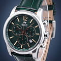 Мужские швейцарские часы-хронографХронографФункция позволяет измерять отрезки времени с особой точностью: часы, минуты, секунды. Верным признаком хронографа является наличие на циферблате 3 дополнительных окошек-счётчиков. Jaguar Acamar J968/3. Кварцевый швейцарский калибр RONDA 5030D. Сапфировое стеклоСапфировое стеклоПрочный и надёжный материал из кристалла сапфира синтетического происхождения, характеризующийся особой твёрдостью и устойчивостью к царапинам и повреждениям. устойчивое к мелким механическим повреждениям. Корпус часов изготовлен из нержавеющей стали. Окошко даты находится в положении между 4 и 5 часов. Класс водозащиты: 50 метров, позволит защитить корпус от случайных брызг или капель дождя. Кожаный ремешок на стандартной застёжке. Стрелки и метки с люминесцентным покрытиемЛюминесцентное покрытиеПозволяет считывать показания времени в темноте. Производители наносят на стрелки, часовые индексы, безель или поверхность циферблата светонакопительный состав, дающий холодное свечение..
