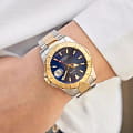 Унисекс швейцарские часы Jaguar Couple Diver J970/2. Кварцевый швейцарский калибр Ronda 6003.d. Сапфировое стеклоСапфировое стеклоПрочный и надёжный материал из кристалла сапфира синтетического происхождения, характеризующийся особой твёрдостью и устойчивостью к царапинам и повреждениям. устойчивое к мелким механическим повреждениям. Корпус часов изготовлен из нержавеющей стали. Стрелки и метки с люминесцентным покрытиемЛюминесцентное покрытиеПозволяет считывать показания времени в темноте. Производители наносят на стрелки, часовые индексы, безель или поверхность циферблата светонакопительный состав, дающий холодное свечение.. Окошко даты находится в положении 3 часа. Класс водозащиты: 200 метров, позволит плавать, нырять и заниматься другими водными видами спорта. Стальной браслет с частичным PVD-покрытиемPVDУльтратонкое покрытие наносится в технике вакуумного напыления, сочетает в себе нитрид титана особой прочности со слоем золота или оксида хрома. Несёт в себе декоративную или защитную функцию. на раскладной застёжкеРаскладная застёжкаТакой тип застёжки используется только на браслетах из металла. Она никогда не раскрывается полностью, происходит разделение на 2 и более частей. Раскладывающая застёжка снизит вероятность потери часов к минимуму.. БезельБезельВнешний ободок, закрепляющий стекло. В спортивных часах так называется поворотное кольцо с делениями на циферблате, выполняет роль таймера – замеряет отрезки времени на шкале. Неподвижный безель – элемент декора. Однонаправленно вращающийся безель на дайверских часах позволяет фиксировать моменты погружения и выныривания на поверхность. с PVD-покрытиемPVDУльтратонкое покрытие наносится в технике вакуумного напыления, сочетает в себе нитрид титана особой прочности со слоем золота или оксида хрома. Несёт в себе декоративную или защитную функцию..