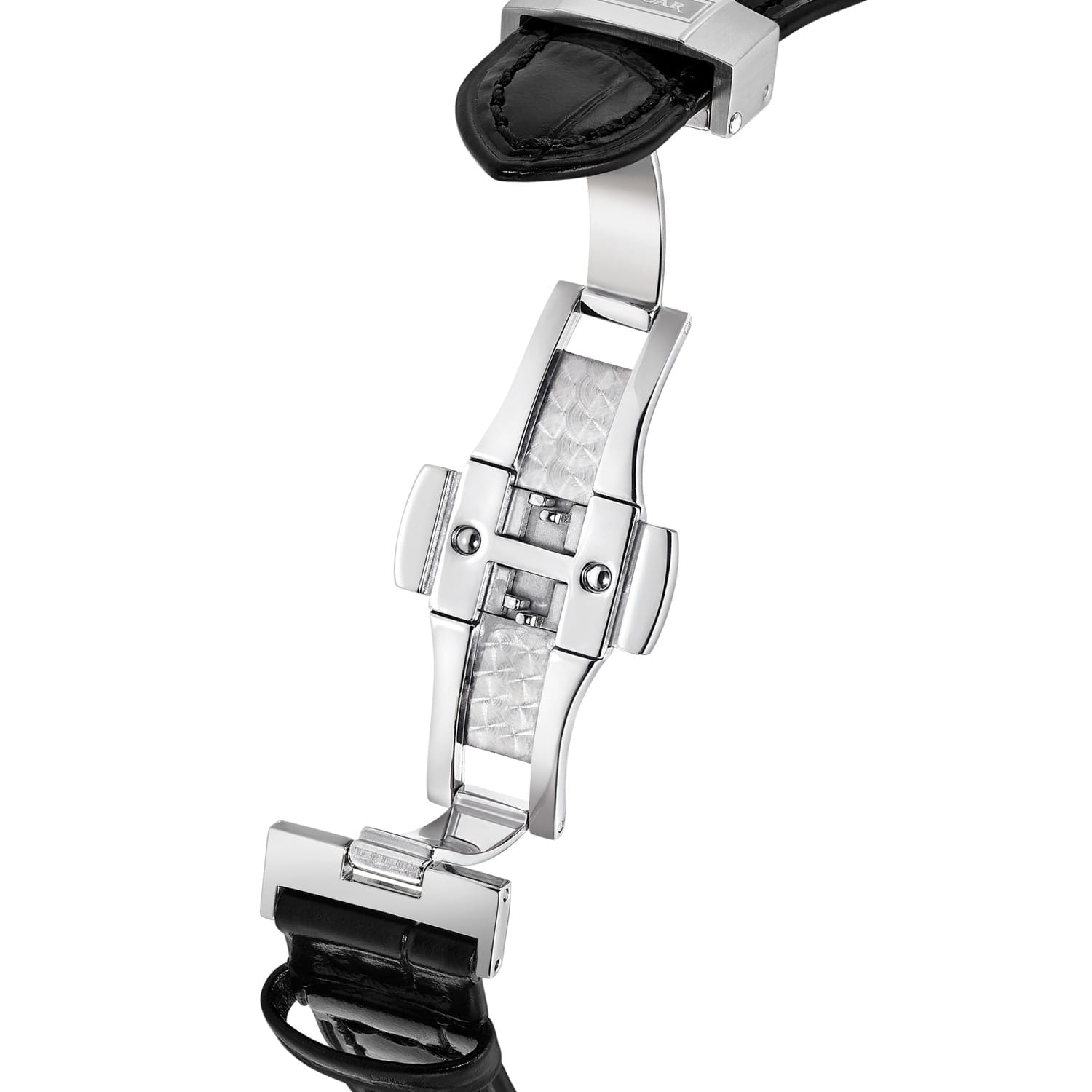 Женские швейцарские часы Jaguar Automatic Open Heart J994/C, механизм — автоподзавод. В часах с автоподзаводом заводная головка практически не используется, что исключает истирание ее материала и материала корпуса. Сапфировое стеклоСапфировое стеклоПрочный и надёжный материал из кристалла сапфира синтетического происхождения, характеризующийся особой твёрдостью и устойчивостью к царапинам и повреждениям. устойчивое к мелким механическим повреждениям. Корпус и браслет часов изготовлены из нержавеющей стали. Класс водозащиты: 50 метров, позволит защитить корпус от случайных брызг или капель дождя. Циферблат украшен кристаллами в роли часовых индексов, крупная апертура в виде сердца, открывающая обзор на балансовое колесо механизма. Кожаный ремешок на застёжке «бабочке» с кнопкамиЗастёжка "бабочка"Такой вид застёжки дополняется предохранителями, помогающими избежать случайного раскрытия браслета. Обладают изящным исполнением. .