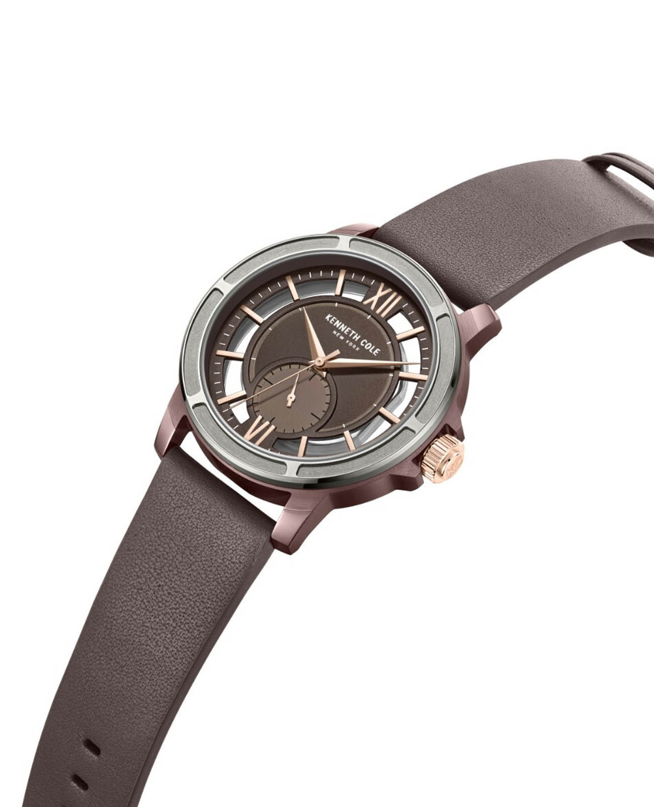 Мужские часы с минеральным стекломМинеральное стеклоМинеральное стекло представляет собой искусственно выращенный минерал кварца. Такое стекло отличается особой устойчивостью к повреждениям и царапинам. Уступает по некоторым качествам сапфировому стеклу. Kenneth Cole Modern Classic KCWGF0035002, кварцевый механизм с высокой точностью. Корпус часов изготовлен из стали с IP-покрытиемIP-покрытиеМетод ионного напыления. Демонстрирует повышенную устойчивость к истиранию, окислению и химическим веществам. Под воздействием высокого давления и температуры около 1500°C молекулы металла надёжно соединяются с частицами корпуса часов.. БезельБезельВнешний ободок, закрепляющий стекло. В спортивных часах так называется поворотное кольцо с делениями на циферблате, выполняет роль таймера – замеряет отрезки времени на шкале. Неподвижный безель – элемент декора. Однонаправленно вращающийся безель на дайверских часах позволяет фиксировать моменты погружения и выныривания на поверхность. с IP-покрытиемIP-покрытиеМетод ионного напыления. Демонстрирует повышенную устойчивость к истиранию, окислению и химическим веществам. Под воздействием высокого давления и температуры около 1500°C молекулы металла надёжно соединяются с частицами корпуса часов.. Циферблат с метками в виде штрихов и римских цифр. Второй часовой пояс вынесен на малый циферблат. Класс водозащиты: 30 метров, позволит защитить корпус от случайных брызг или капель дождя. Кожаный ремешок на стандартной застежке.