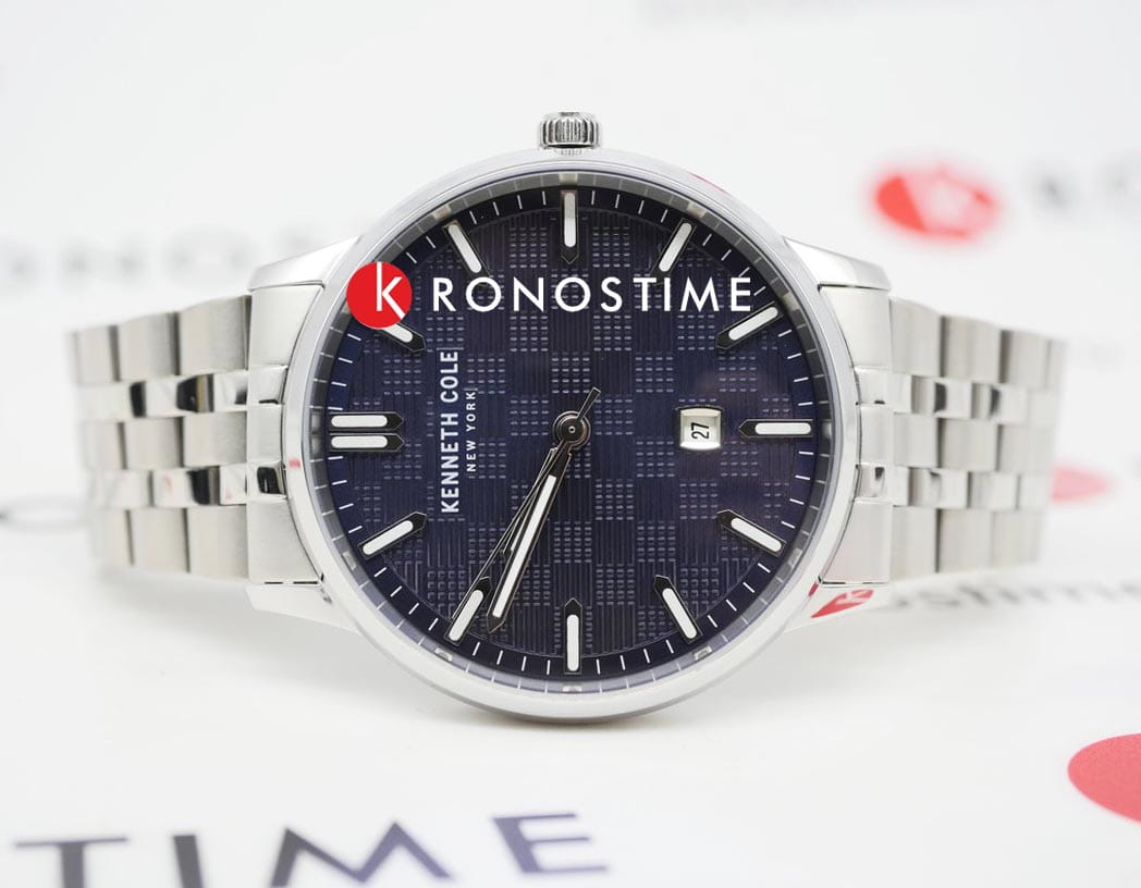 Kenneth Cole KCWGH0046904 — стильные мужские часы, сочетающие современный дизайн и функциональность. Корпус диаметром 42 мм выполнен из нержавеющей стали, что обеспечивает долговечность и элегантный внешний вид. Минеральное стеклоМинеральное стеклоМинеральное стекло представляет собой искусственно выращенный минерал кварца. Такое стекло отличается особой устойчивостью к повреждениям и царапинам. Уступает по некоторым качествам сапфировому стеклу. защищает циферблат от царапин. Синий текстурированный циферблат с аналоговой индикацией дополнен окошком даты на отметке «3 часа», подчёркивая функциональность модели. Часы оснащены кварцевым механизмом, обеспечивающим точность хода. Водозащита до 3 ATM (30 метров) делает их подходящими для повседневного использования, но не для плавания или погружения в воду. Браслет из нержавеющей стали с раскладной застёжкойРаскладная застёжкаТакой тип застёжки используется только на браслетах из металла. Она никогда не раскрывается полностью, происходит разделение на 2 и более частей. Раскладывающая застёжка снизит вероятность потери часов к минимуму. гарантирует комфортное ношение и надёжную фиксацию. Kenneth Cole KCWGH0046904 — это идеальный выбор для мужчин, ценящих стиль и надёжность.