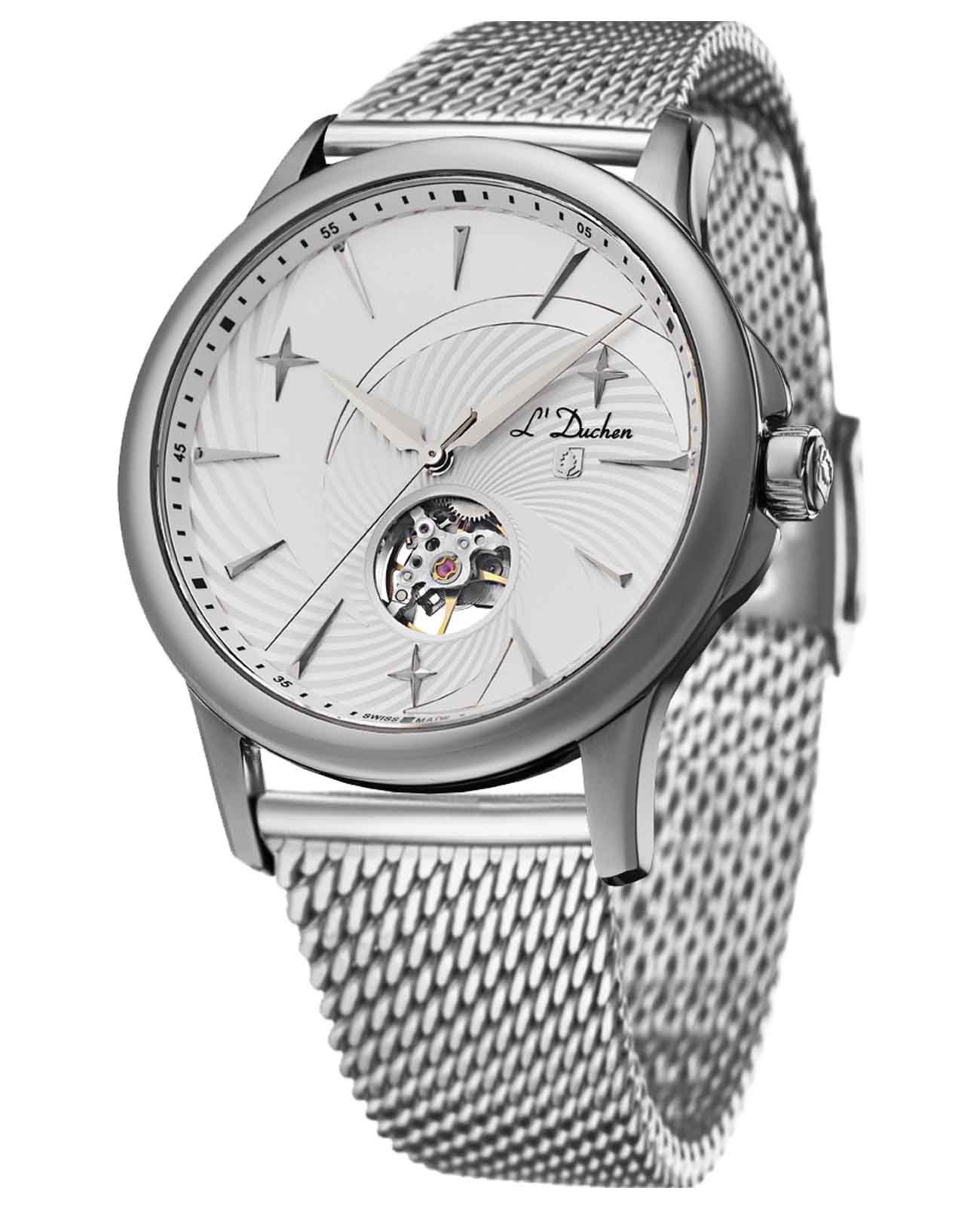 Мужские механические швейцарские часы с автоподзаводом LDuchen Supernova D 154.11.33 M, кварцевый механизм с высокой точностью. Сапфировое стеклоСапфировое стеклоПрочный и надёжный материал из кристалла сапфира синтетического происхождения, характеризующийся особой твёрдостью и устойчивостью к царапинам и повреждениям. устойчивое к появлению царапин, обладающее высокой прозрачностью. Корпус часов выполнен из нержавеющей стали. Класс водозащиты: 50 метров, позволит защитить корпус от случайных брызг или капель дождя. Стальной браслет миланского плетения на раскладном замкеРаскладной замокДанный вариант застежки используется только на часах с металлическим браслетом. Отличительная особенность такого крепления в том, что длина браслета становится универсальной и вы можете самостоятельно отрегулировать нужный вам размер – застежка просто двигается по браслету часов..