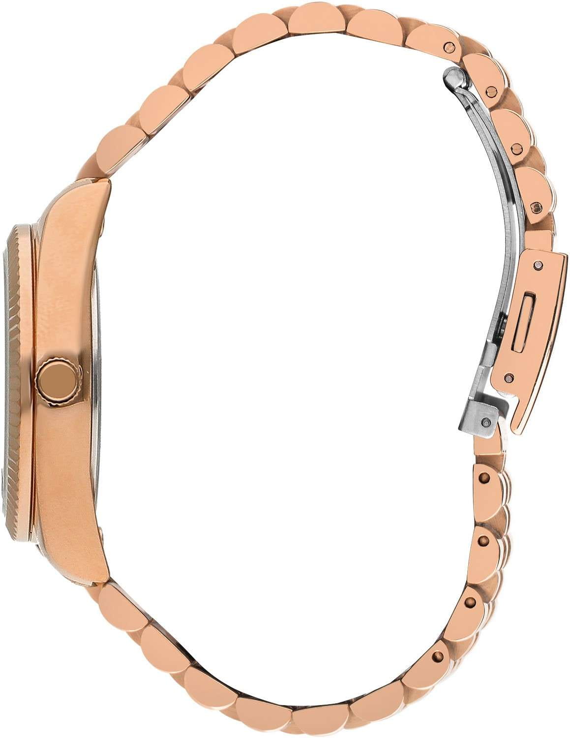 Женские наручные часы Lee Cooper LC07115.420 — это элегантная модель с утончённым дизайном. Корпус диаметром 36 мм выполнен из суперметалла с IP-покрытиемIP-покрытиеМетод ионного напыления. Демонстрирует повышенную устойчивость к истиранию, окислению и химическим веществам. Под воздействием высокого давления и температуры около 1500°C молекулы металла надёжно соединяются с частицами корпуса часов., что придаёт часам изысканный вид. Перламутровый циферблат украшен изящными вставками из циркония в виде меток времени и стрелками, обеспечивая удобное считывание времени. Циферблат защищён минеральным стекломМинеральное стеклоМинеральное стекло представляет собой искусственно выращенный минерал кварца. Такое стекло отличается особой устойчивостью к повреждениям и царапинам. Уступает по некоторым качествам сапфировому стеклу., устойчивым к царапинам. Часы работают на кварцевом механизме, обеспечивая точность хода. Браслет из нержавеющей стали с раскладной застёжкойРаскладная застёжкаТакой тип застёжки используется только на браслетах из металла. Она никогда не раскрывается полностью, происходит разделение на 2 и более частей. Раскладывающая застёжка снизит вероятность потери часов к минимуму. гарантирует комфортное ношение и надёжную фиксацию на запястье. Водозащита 30 метров защищает часы от случайных брызг и дождя, делая их подходящими для повседневного использования.