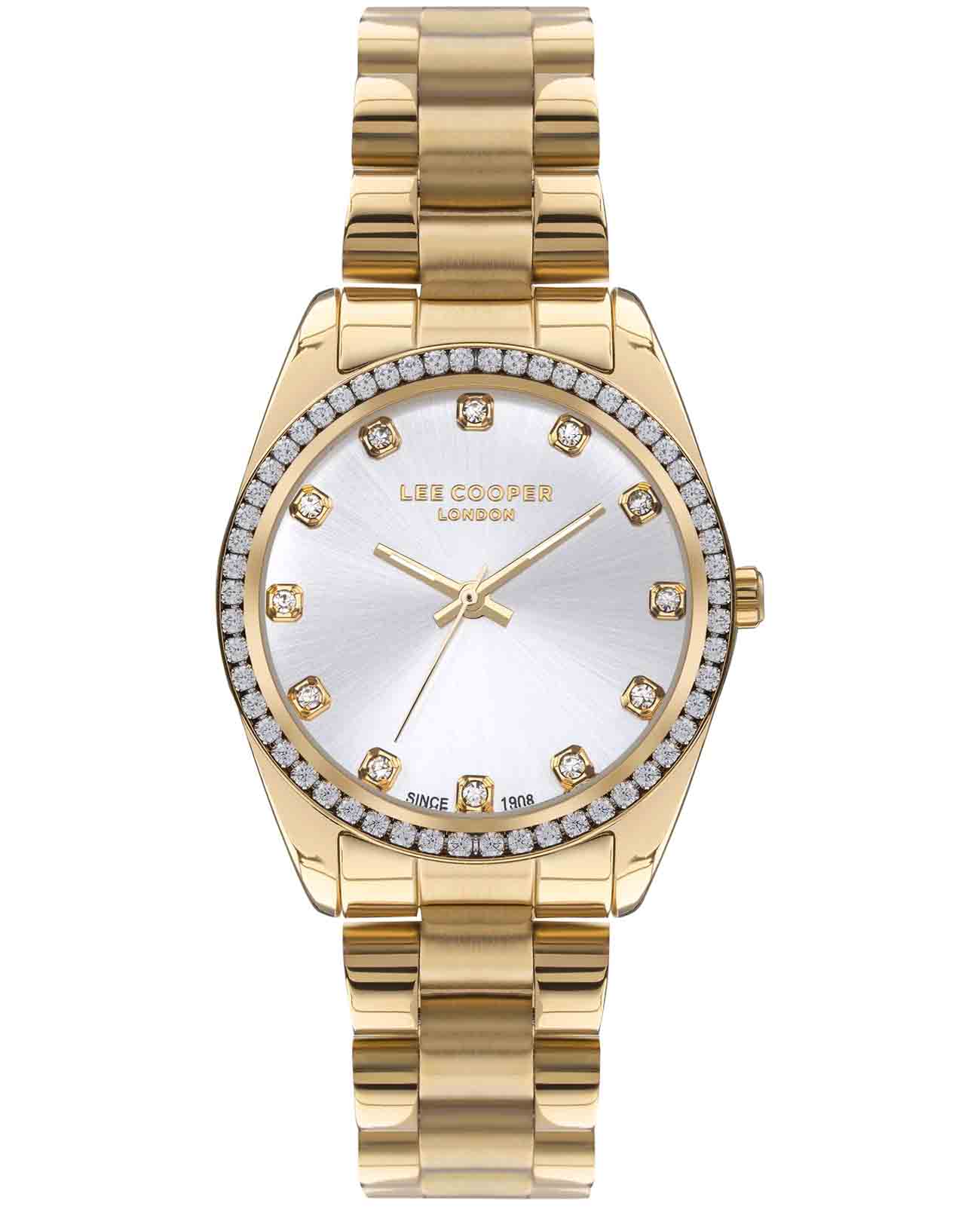 Женские наручные часы Lee Cooper LC07478.230 — это элегантная модель с утончённым дизайном. Корпус диаметром 34 мм выполнен из суперметалла с IP-покрытиемIP-покрытиеМетод ионного напыления. Демонстрирует повышенную устойчивость к истиранию, окислению и химическим веществам. Под воздействием высокого давления и температуры около 1500°C молекулы металла надёжно соединяются с частицами корпуса часов., что придаёт часам изысканный вид. Серебристый циферблат украшен изящными стрелками и вставками из циркония в виде меток, обеспечивая удобное считывание времени. Циферблат защищён минеральным стекломМинеральное стеклоМинеральное стекло представляет собой искусственно выращенный минерал кварца. Такое стекло отличается особой устойчивостью к повреждениям и царапинам. Уступает по некоторым качествам сапфировому стеклу., устойчивым к царапинам. Часы работают на кварцевом механизме, обеспечивая точность хода. Браслет из нержавеющей стали с раскладной застёжкойРаскладная застёжкаТакой тип застёжки используется только на браслетах из металла. Она никогда не раскрывается полностью, происходит разделение на 2 и более частей. Раскладывающая застёжка снизит вероятность потери часов к минимуму. гарантирует комфортное ношение и надёжную фиксацию на запястье. Водозащита 30 метров защищает часы от случайных брызг и дождя, делая их подходящими для повседневного использования. БезельБезельВнешний ободок, закрепляющий стекло. В спортивных часах так называется поворотное кольцо с делениями на циферблате, выполняет роль таймера – замеряет отрезки времени на шкале. Неподвижный безель – элемент декора. Однонаправленно вращающийся безель на дайверских часах позволяет фиксировать моменты погружения и выныривания на поверхность. инкрустирован кристаллами. Стрелки покрыты люминесцентным покрытиемЛюминесцентное покрытиеПозволяет считывать показания времени в темноте. Производители наносят на стрелки, часовые индексы, безель или поверхность циферблата светонакопительный состав, дающий холодное свечение., обеспечивая удобное считывание показаний в условиях недостаточного освещения.