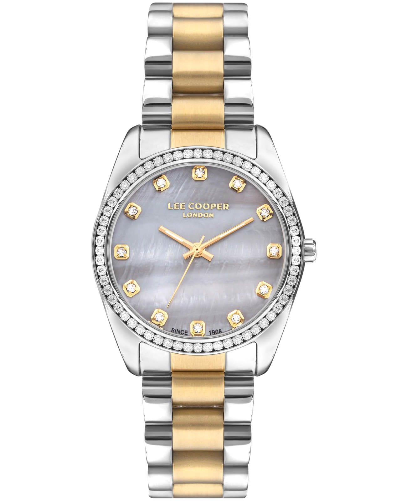 Женские часы Lee Cooper LC07478.260 — это стильное сочетание элегантности и современного дизайна. Круглый корпус диаметром 34 мм выполнен из суперметалла в серебристом цвете, а неподвижный безельБезельВнешний ободок, закрепляющий стекло. В спортивных часах так называется поворотное кольцо с делениями на циферблате, выполняет роль таймера – замеряет отрезки времени на шкале. Неподвижный безель – элемент декора. Однонаправленно вращающийся безель на дайверских часах позволяет фиксировать моменты погружения и выныривания на поверхность. украшен цирконами, придающими модели особый блеск. Серый циферблат защищен минеральным стекломМинеральное стеклоМинеральное стекло представляет собой искусственно выращенный минерал кварца. Такое стекло отличается особой устойчивостью к повреждениям и царапинам. Уступает по некоторым качествам сапфировому стеклу., обеспечивающим устойчивость к царапинам. Метки инкрустированы цирконами. Часы оснащены надежным кварцевым механизмом, а металлический браслет с частичным IP-покрытиемIP-покрытиеМетод ионного напыления. Демонстрирует повышенную устойчивость к истиранию, окислению и химическим веществам. Под воздействием высокого давления и температуры около 1500°C молекулы металла надёжно соединяются с частицами корпуса часов. на раскладной застёжкеРаскладная застёжкаТакой тип застёжки используется только на браслетах из металла. Она никогда не раскрывается полностью, происходит разделение на 2 и более частей. Раскладывающая застёжка снизит вероятность потери часов к минимуму. гарантирует комфортную посадку на запястье. Стрелки с люминесцентным покрытиемЛюминесцентное покрытиеПозволяет считывать показания времени в темноте. Производители наносят на стрелки, часовые индексы, безель или поверхность циферблата светонакопительный состав, дающий холодное свечение. позволяют легко считывать время даже в условиях недостаточного освещения. Водозащита 30 метров защищает модель от случайных брызг и дождя. Lee Cooper  — отличный выбор для тех, кто ценит утонченность и качество.