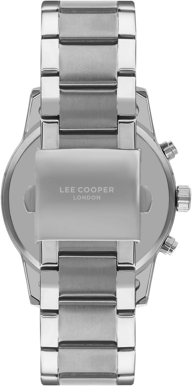 Мужские часы Lee Cooper LC07562.390 — это стильное сочетание элегантности и современного дизайна. Круглый корпус диаметром 46 мм выполнен из суперметалла серебристого цвета, что придает модели особый вид. Циферблат защищен минеральным стекломМинеральное стеклоМинеральное стекло представляет собой искусственно выращенный минерал кварца. Такое стекло отличается особой устойчивостью к повреждениям и царапинам. Уступает по некоторым качествам сапфировому стеклу., обеспечивающим устойчивость к царапинам. Метки в виде штрихов. Часы оснащены надежным кварцевым механизмом, а стальной браслет на раскладной застёжкеРаскладная застёжкаТакой тип застёжки используется только на браслетах из металла. Она никогда не раскрывается полностью, происходит разделение на 2 и более частей. Раскладывающая застёжка снизит вероятность потери часов к минимуму. гарантирует комфортную посадку на запястье. Мультифункциональная модель с индикацией даты, дня недели, с дополнительным 24-х часовым индикатором. Стрелки с люминесцентным покрытиемЛюминесцентное покрытиеПозволяет считывать показания времени в темноте. Производители наносят на стрелки, часовые индексы, безель или поверхность циферблата светонакопительный состав, дающий холодное свечение. позволяют легко считывать время даже в условиях недостаточного освещения. Водозащита 50 метров позволит защитить корпус от случайных брызг или капель дождя. Lee Cooper — отличный выбор для тех, кто ценит утонченность и качество.