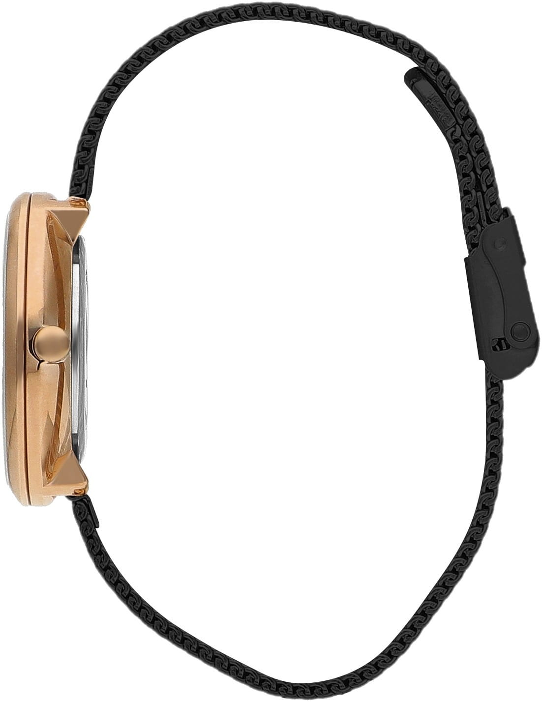 Женские кварцевые часы Lee Cooper LC07601.450 — это классический аксессуар с элегантным дизайном. Корпус диаметром 32 мм выполнен из суперметалла с IP-покрытиемIP-покрытиеМетод ионного напыления. Демонстрирует повышенную устойчивость к истиранию, окислению и химическим веществам. Под воздействием высокого давления и температуры около 1500°C молекулы металла надёжно соединяются с частицами корпуса часов. розового золота. Циферблат чёрного цвета украшен вставками из циркония, придающими сияние и изысканность. Метки на циферблате — в виде точек. Циферблат защищён минеральным стекломМинеральное стеклоМинеральное стекло представляет собой искусственно выращенный минерал кварца. Такое стекло отличается особой устойчивостью к повреждениям и царапинам. Уступает по некоторым качествам сапфировому стеклу.. Часы оснащены браслетом миланского плетения с IP-покрытиемIP-покрытиеМетод ионного напыления. Демонстрирует повышенную устойчивость к истиранию, окислению и химическим веществам. Под воздействием высокого давления и температуры около 1500°C молекулы металла надёжно соединяются с частицами корпуса часов. на раскладной застёжкеРаскладная застёжкаТакой тип застёжки используется только на браслетах из металла. Она никогда не раскрывается полностью, происходит разделение на 2 и более частей. Раскладывающая застёжка снизит вероятность потери часов к минимуму.. Водонепроницаемость 30 м позволяет использовать часы в повседневных условиях, защищая от случайных брызг и капель дождя. Сочетание лаконичного стиля и надёжного исполнения делает эти часы универсальным выбором на каждый день.