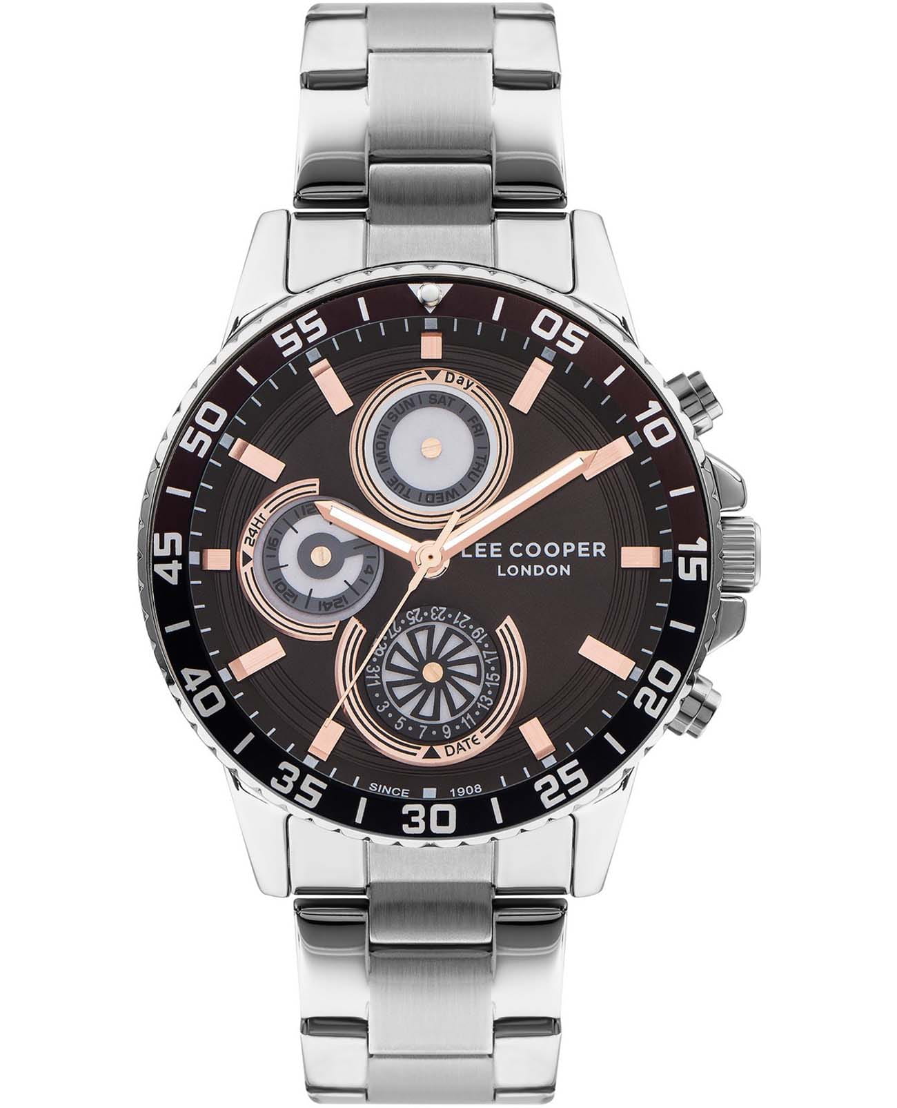 Мужские наручные часы Lee Cooper LC07636.370 оснащены кварцевым механизмом, обеспечивающий высокую точность хода и надежность. Корпус часов выполнен из суперметалла серебристого цвета, что делает их устойчивыми к внешним воздействиям и придает благородный вид. Элегантный безельБезельВнешний ободок, закрепляющий стекло. В спортивных часах так называется поворотное кольцо с делениями на циферблате, выполняет роль таймера – замеряет отрезки времени на шкале. Неподвижный безель – элемент декора. Однонаправленно вращающийся безель на дайверских часах позволяет фиксировать моменты погружения и выныривания на поверхность. с IP-покрытиемIP-покрытиеМетод ионного напыления. Демонстрирует повышенную устойчивость к истиранию, окислению и химическим веществам. Под воздействием высокого давления и температуры около 1500°C молекулы металла надёжно соединяются с частицами корпуса часов.. Циферблат черного цвета украшен классическими стрелками с люминесцентным покрытиемЛюминесцентное покрытиеПозволяет считывать показания времени в темноте. Производители наносят на стрелки, часовые индексы, безель или поверхность циферблата светонакопительный состав, дающий холодное свечение., гармонично дополняющим общий дизайн модели. Для защиты циферблата используется минеральное стеклоМинеральное стеклоМинеральное стекло представляет собой искусственно выращенный минерал кварца. Такое стекло отличается особой устойчивостью к повреждениям и царапинам. Уступает по некоторым качествам сапфировому стеклу., устойчивое к царапинам и механическим повреждениям. Корпус имеет круглую форму диаметром 45 мм, что делает часы заметными и подходящими. Браслет из стали оснащен раскладной застёжкойРаскладная застёжкаТакой тип застёжки используется только на браслетах из металла. Она никогда не раскрывается полностью, происходит разделение на 2 и более частей. Раскладывающая застёжка снизит вероятность потери часов к минимуму., обеспечивающим комфортное и безопасное ношение. Вынесенный циферблат с 24-х часовым указателем времени, индикацией даты и дня недели. Часы обладают водонепроницаемостью до 50 метров (5 АТМ), что позволяет использовать их в повседневной жизни, включая контакт с водой при мытье рук или дожде. Эти часы станут идеальным выбором для мужчин, ценящих стиль, качество и функциональность.