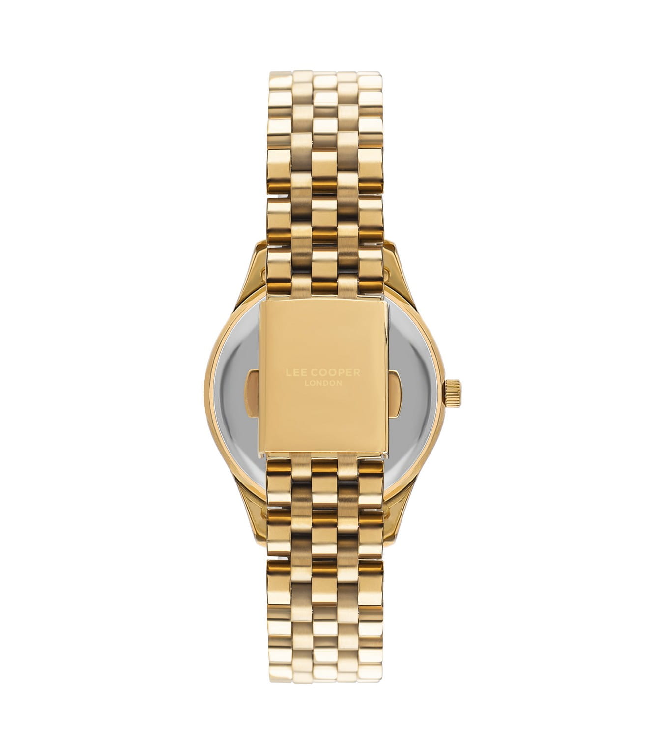 Женские часы Lee Cooper LC07826.130 выполнены в классическом стиле и сочетают строгий дизайн с надёжным механизмом. Модель оснащена кварцевым механизмом, обеспечивающим точность хода и минимальное обслуживание. Корпус круглой формы имеет размер 35 мм, изготовлен из суперметалла с IP-покрытиемIP-покрытиеМетод ионного напыления. Демонстрирует повышенную устойчивость к истиранию, окислению и химическим веществам. Под воздействием высокого давления и температуры около 1500°C молекулы металла надёжно соединяются с частицами корпуса часов. и с изысканным неподвижным безелемБезельВнешний ободок, закрепляющий стекло. В спортивных часах так называется поворотное кольцо с делениями на циферблате, выполняет роль таймера – замеряет отрезки времени на шкале. Неподвижный безель – элемент декора. Однонаправленно вращающийся безель на дайверских часах позволяет фиксировать моменты погружения и выныривания на поверхность. с вставками из циркона, гарантирует комфорт при ношении. Циферблат дополнен изящными вставками из циркона для чёткого отсчёта времени. Защиту циферблата обеспечивает минеральное стеклоМинеральное стеклоМинеральное стекло представляет собой искусственно выращенный минерал кварца. Такое стекло отличается особой устойчивостью к повреждениям и царапинам. Уступает по некоторым качествам сапфировому стеклу., устойчивое к мелким механическим повреждениям. Стрелки с люминесцентным покрытиемЛюминесцентное покрытиеПозволяет считывать показания времени в темноте. Производители наносят на стрелки, часовые индексы, безель или поверхность циферблата светонакопительный состав, дающий холодное свечение.. Стальной браслет с IP-покрытиемIP-покрытиеМетод ионного напыления. Демонстрирует повышенную устойчивость к истиранию, окислению и химическим веществам. Под воздействием высокого давления и температуры около 1500°C молекулы металла надёжно соединяются с частицами корпуса часов. на раскладной застёжкеРаскладная застёжкаТакой тип застёжки используется только на браслетах из металла. Она никогда не раскрывается полностью, происходит разделение на 2 и более частей. Раскладывающая застёжка снизит вероятность потери часов к минимуму. гарантирует удобную посадку и надёжную фиксацию на запястье. Водозащита 30WR позволяет использовать часы в повседневных условиях без риска повреждения от случайных брызг воды. Это сочетание классического дизайна, прочности материалов и качества исполнения для уверенных в себе женщин.