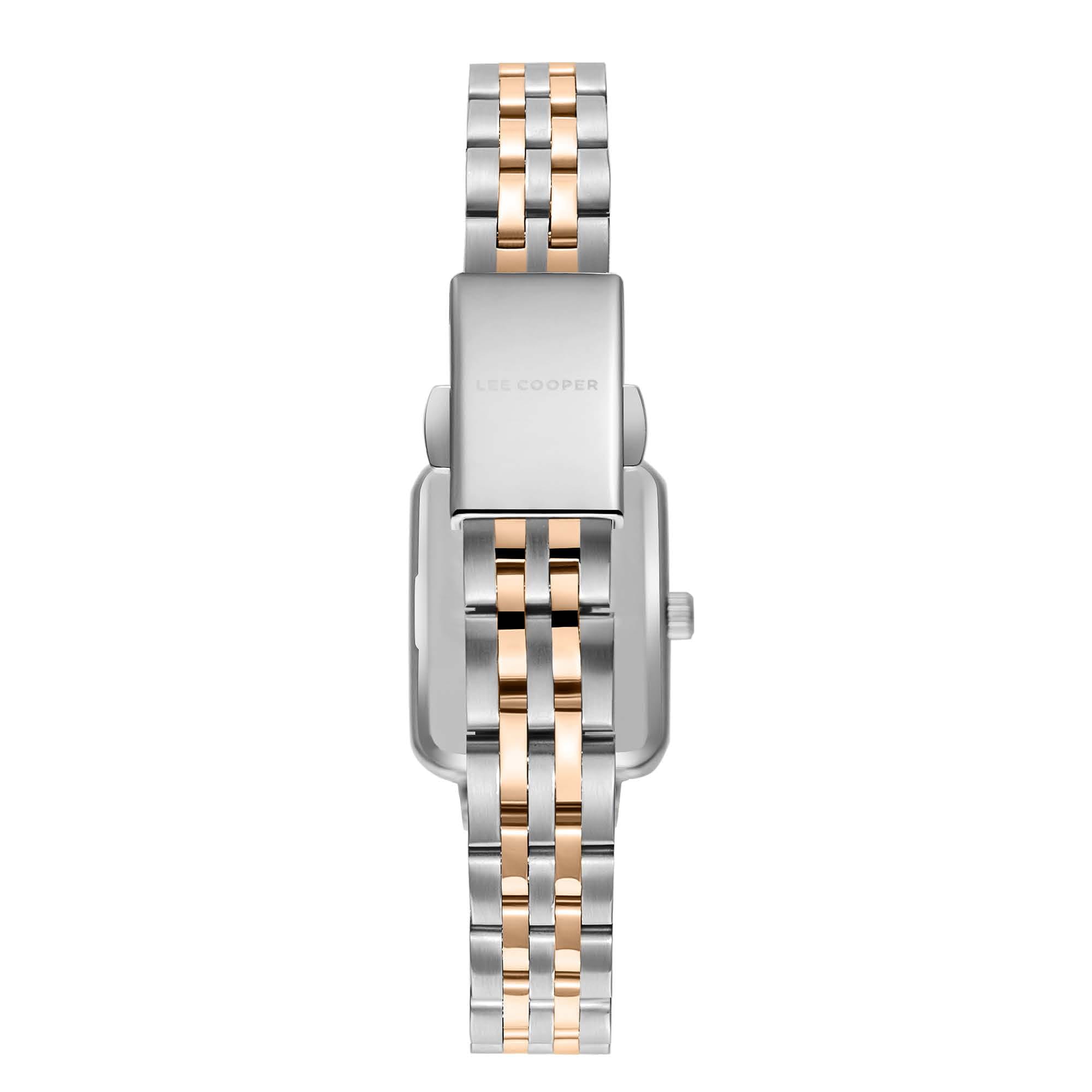 Женские наручные часы Lee Cooper LLC08121.520 — это изысканная модель, сочетающая элегантный дизайн и практичность. Корпус выполнен из нержавеющей стали, придавая часам уникальный и утончённый вид. Перламутровый циферблат с метками в виде штрихов добавляет свежий и стильный акцент, делая часы привлекательными для различных случаев. Модель оснащена надёжным кварцевым механизмом, обеспечивающим точность и долговечность. Минеральное стеклоМинеральное стеклоМинеральное стекло представляет собой искусственно выращенный минерал кварца. Такое стекло отличается особой устойчивостью к повреждениям и царапинам. Уступает по некоторым качествам сапфировому стеклу. защищает циферблат от повреждений и царапин, сохраняя его презентабельный вид. Водонепроницаемость 50 метров защищает часы от случайных брызг, что делает их подходящими для повседневных ситуаций, таких как мытьё рук или прогулки под лёгким дождём. Раскладная застёжкаРаскладная застёжкаТакой тип застёжки используется только на браслетах из металла. Она никогда не раскрывается полностью, происходит разделение на 2 и более частей. Раскладывающая застёжка снизит вероятность потери часов к минимуму. обеспечивает удобную посадку и надёжность при ношении. В целом, эти часы являются отличным выбором для тех, кто ищет аксессуар, объединяющий классический стиль, уникальное цветовое решение и функциональность. Их гармоничное сочетание серебристых и золотистых оттенков с элегантным перламутровым циферблатом и качественным механизмом делает их идеальным дополнением к любому гардеробу — от официального до повседневного.