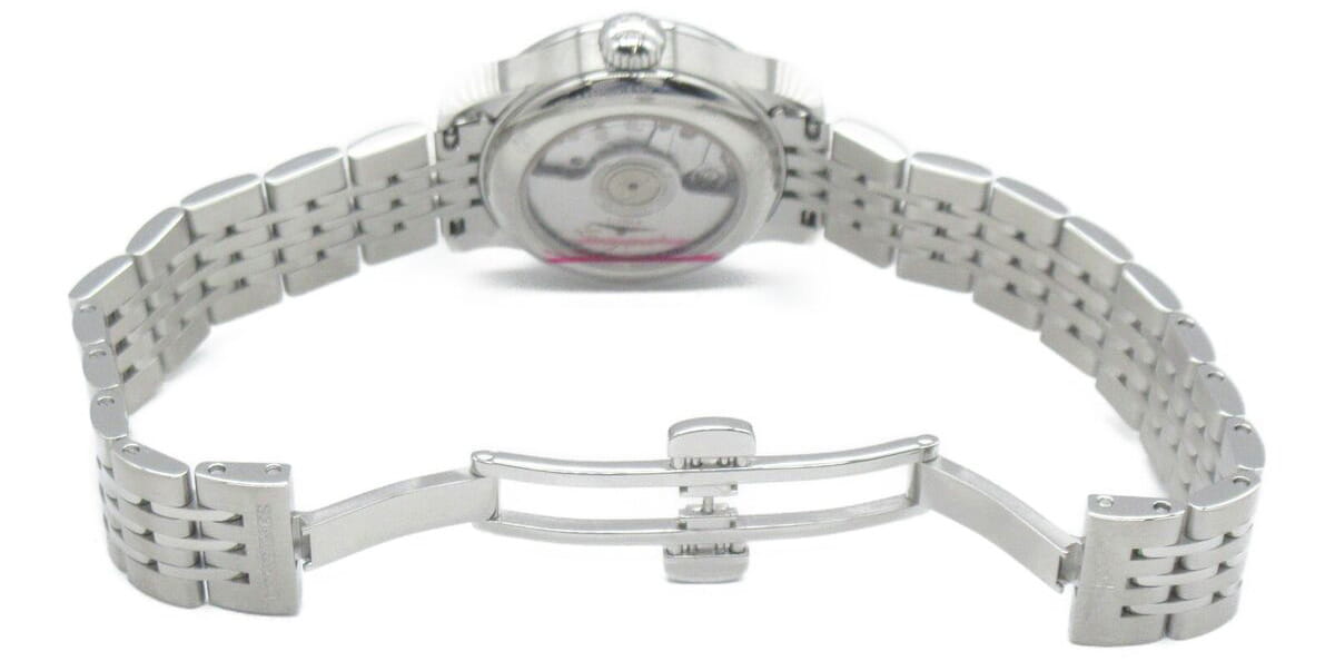 Женские механические швейцарские часы с бриллиантами Longines Record Collection L2.320.0.57.6, механический механизм (автоматический калибр) с высокой точностью. Сапфировое стеклоСапфировое стеклоПрочный и надёжный материал из кристалла сапфира синтетического происхождения, характеризующийся особой твёрдостью и устойчивостью к царапинам и повреждениям. устойчивое к появлению царапин, обладающее высокой прозрачностью. БезельБезельВнешний ободок, закрепляющий стекло. В спортивных часах так называется поворотное кольцо с делениями на циферблате, выполняет роль таймера – замеряет отрезки времени на шкале. Неподвижный безель – элемент декора. Однонаправленно вращающийся безель на дайверских часах позволяет фиксировать моменты погружения и выныривания на поверхность. с 52 бриллиантами группы Top Wesselton IF-VVS общим весом 0.405 карата. Прозрачная задняя крышка с сапфировым стекломСапфировое стеклоПрочный и надёжный материал из кристалла сапфира синтетического происхождения, характеризующийся особой твёрдостью и устойчивостью к царапинам и повреждениям.. Посеребренные полированные стрелки и бриллиантовые метки. Циферблат с 12 бриллиантами группы Top Wesselton VS-SI общим весом 0.034 карата. Автоматический механизм с частотой баланса 28 800 полуколебаний в час и монокристаллической кремниевой спиралью баланса, обеспечивающей запас хода около 45 часов. Специальная функция - хронометр c сертификацией COSCСертификат COSCОфициальный сертификат, подтверждающий то, что часы ходят с особо высокой точностью. Для получения документа часы подвергаются тестовым испытаниям, разработанным швейцарским институтом тестирования хронометров COSC. Допустимая норма для механических часов -4/+6 секунд в день, для кварцевых моделей +/- 0,07 секунд в день.. Класс водозащиты: 30 метров, позволит защитить корпус от случайных брызг или капель дождя. Корпус часов изготовлен из стали. Стальной браслет на застёжке-бабочке с кнопкамиЗастёжка "бабочка"Такой вид застёжки дополняется предохранителями, помогающими избежать случайного раскрытия браслета. Обладают изящным исполнением. .