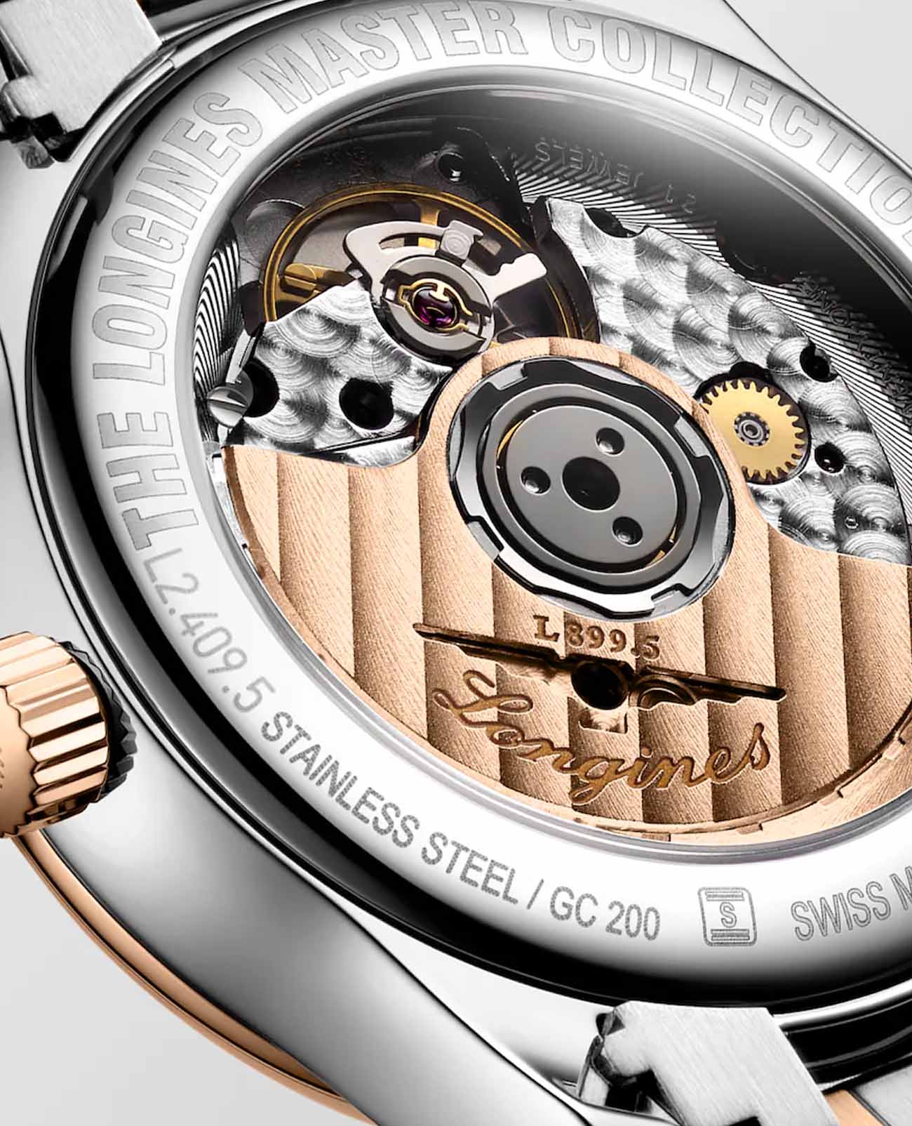Женские швейцарские механические часы с автоподзаводом Longines Master Collection L2.409.5.89.7. Сапфировое стеклоСапфировое стеклоПрочный и надёжный материал из кристалла сапфира синтетического происхождения, характеризующийся особой твёрдостью и устойчивостью к царапинам и повреждениям. устойчивое к появлению царапин, обладающее высокой прозрачностью. Корпус часов изготовлен из нержавеющей стали. БезельБезельВнешний ободок, закрепляющий стекло. В спортивных часах так называется поворотное кольцо с делениями на циферблате, выполняет роль таймера – замеряет отрезки времени на шкале. Неподвижный безель – элемент декора. Однонаправленно вращающийся безель на дайверских часах позволяет фиксировать моменты погружения и выныривания на поверхность. с 18-каратным золотом18-каратное золотоОбозначение по каратной системе пробирования, оно показывает, сколько драгоценного металла содержится в изделии. 18 карат - в составе 75% чистого золота, соответствует 750 пробе.