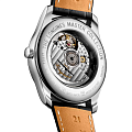 Римские цифры в сочетании с кожаным ремешком отражают элегантность. Внутри стального корпуса заключён швейцарский автоматический механизм L897, отличающийся 64-часовым запасом хода. Скелетонизированная задняя крышка с сапфировым стеклом позволяет отслеживать движение деталей и любоваться их отделкой. Годовой календарь включает указатели даты и дня недели.